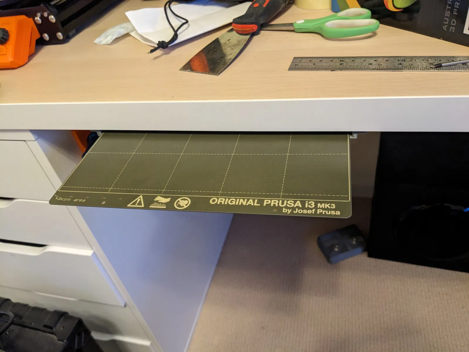 Lưu trữ dưới bàn cho các tấm xây dựng Prusa i3.