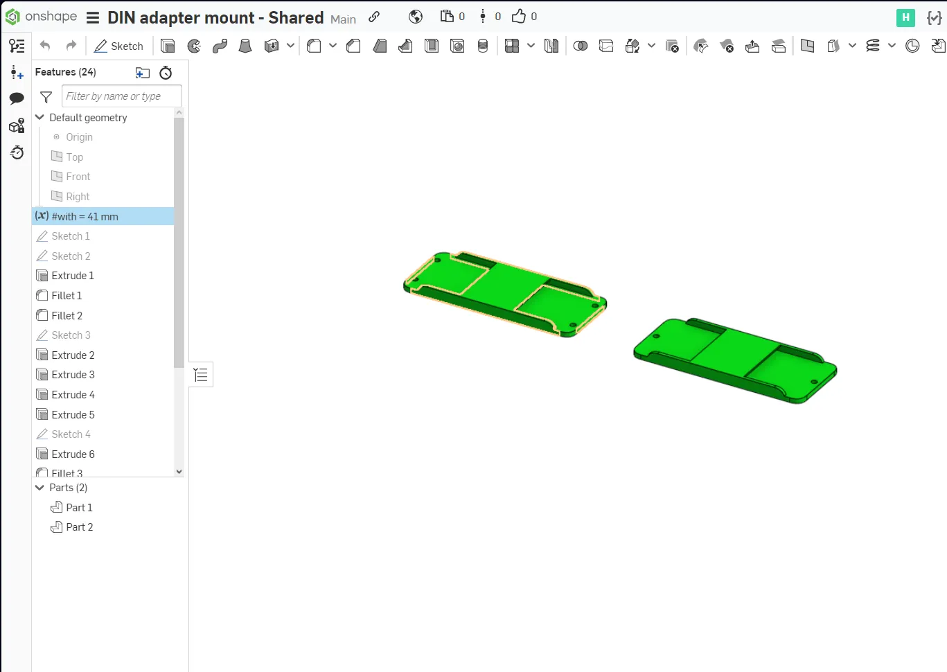 Gắn trên thanh DIN cho (trong trường hợp của tôi) một nguồn điện meanwell. Tôi cần một nguồn điện 5V trung tâm cho một vài raspberry pi và những thứ khác chạy trên 5V. Để tránh cảnh báo điện áp thấp, tôi muốn một nguồn điện có thể điều chỉnh đến ví dụ 5.1V. Giá đỡ này cũng có thể được sử dụng cho các thành phần khác cần một giá đỡ DIN. Có thể in mà không cần hỗ trợ. Mô hình này có thể được tùy chỉnh bằng cách sử dụng liên kết trong LinkToOnShape.txt. Các bộ phận: