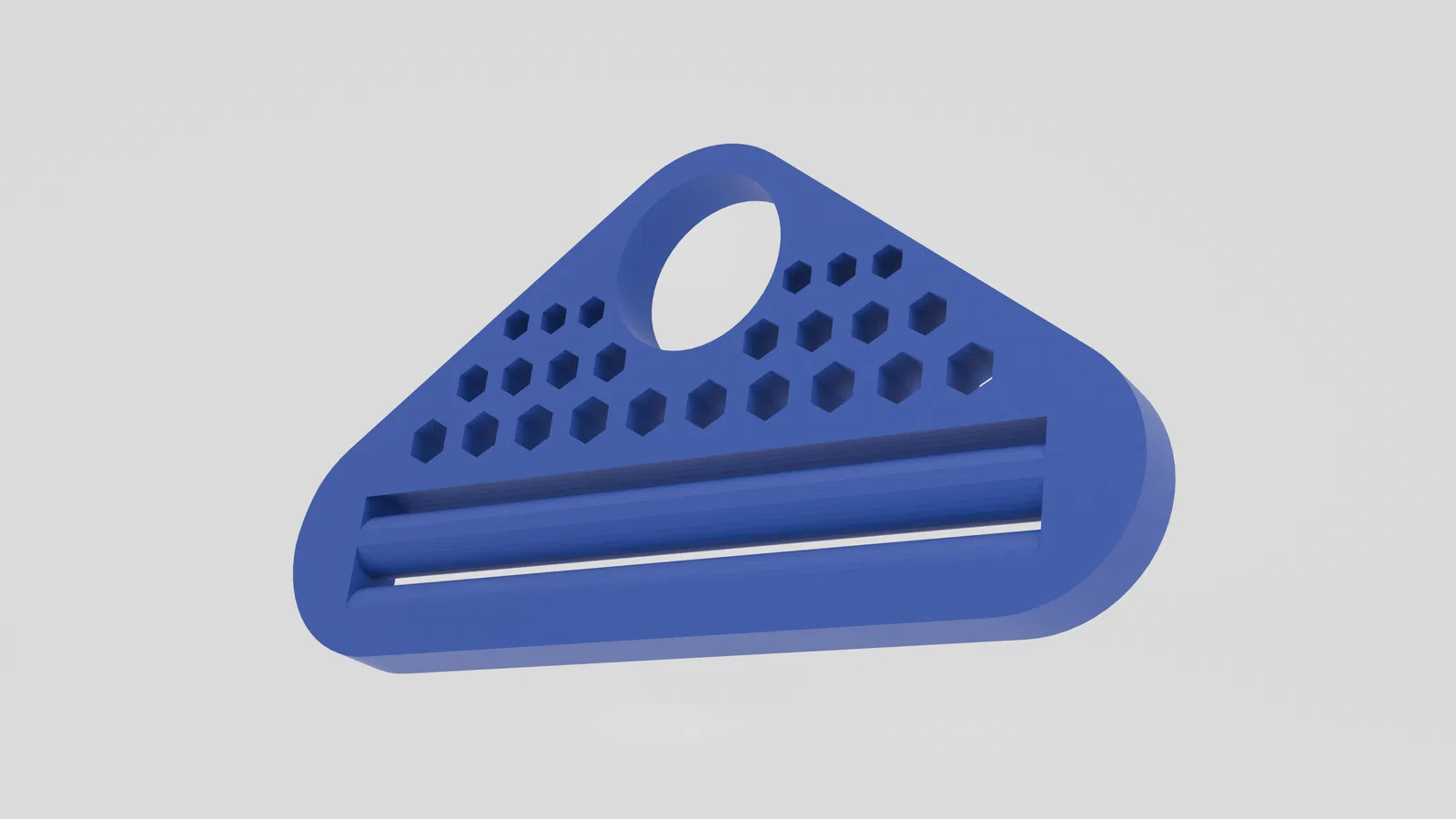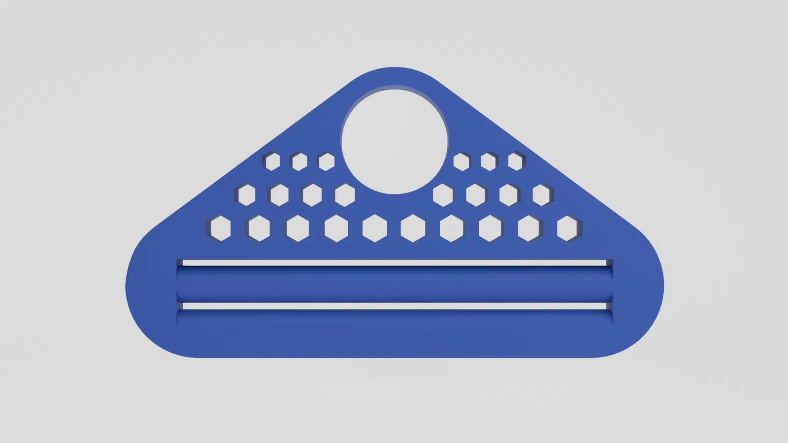 Đây là một dụng cụ nặn kem đánh răng đơn giản, được thiết kế với hai khe cắm giúp cố định tuýp kem không bị tuột ra ngoài. Điểm nhấn là họa tiết hình tổ ong được cắt rỗng, giúp giảm bớt trọng lượng và tạo thêm nét thẩm mỹ đẹp mắt cho sản phẩm.