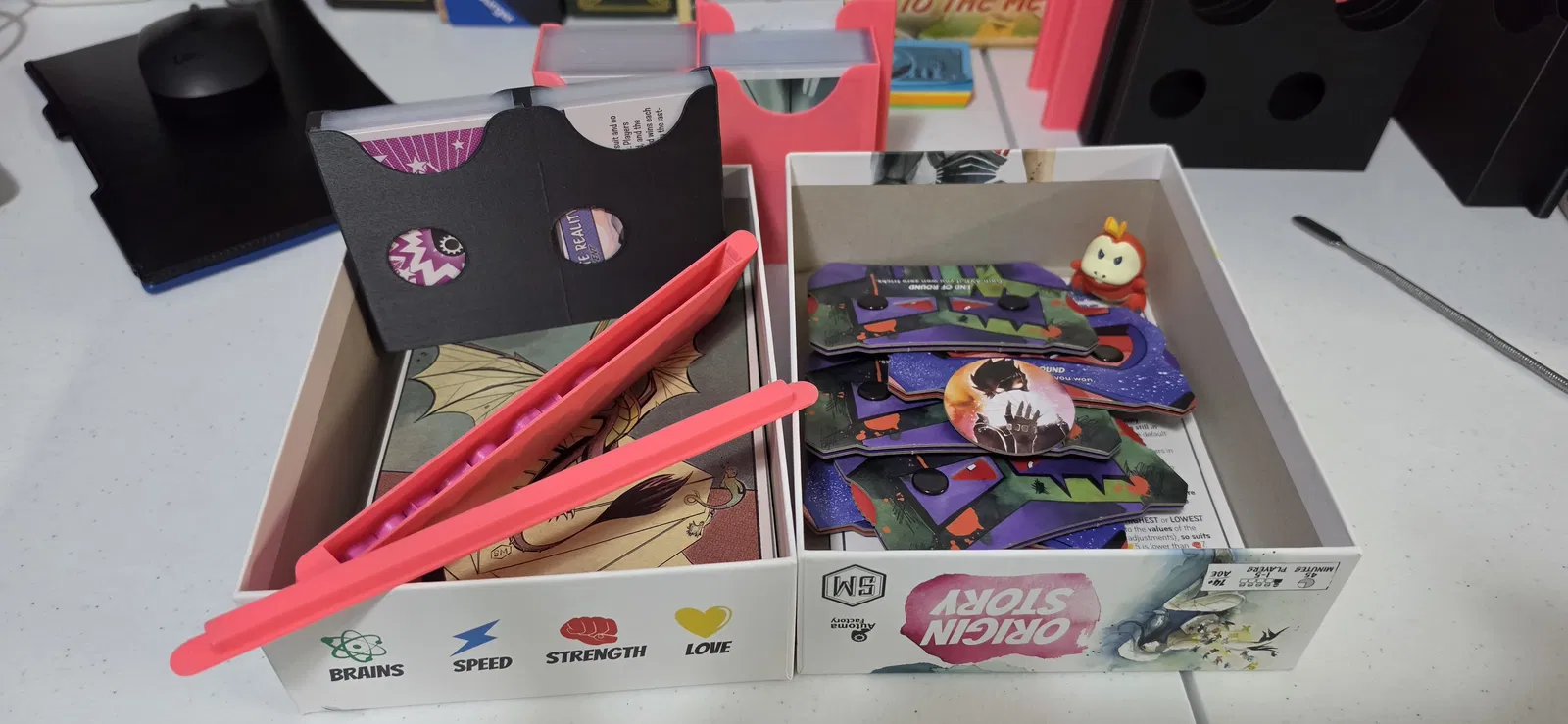 Tôi cực kỳ thích trò chơi này và muốn bọc sleeve cho các lá bài. Tôi đã thiết kế khay insert này để vừa với các loại sleeve Gamegenic Premium với một vài thay đổi nhỏ. Mọi thứ đều vừa khít nhưng rất chặt, gần như không gây hở nắp hộp chút nào.