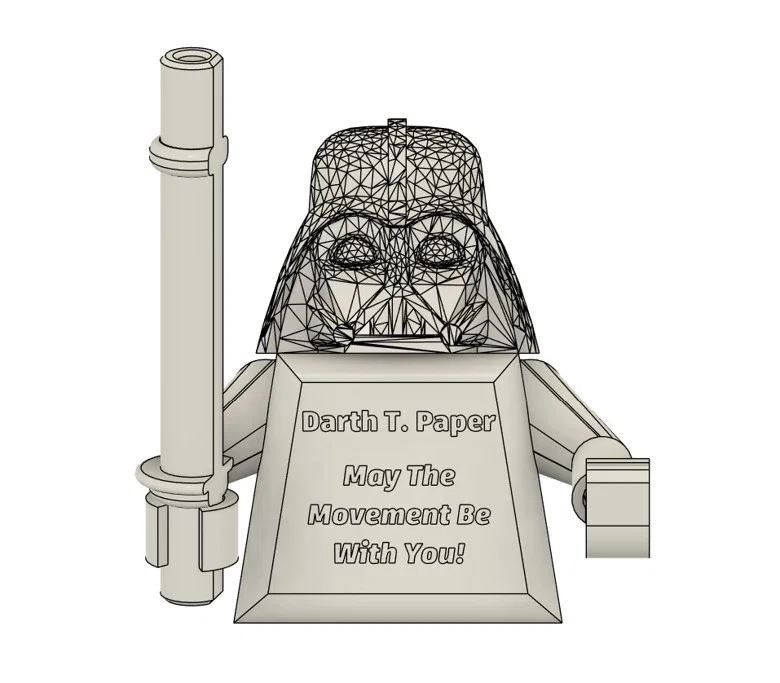 Mang cả vũ trụ Star Wars vào phòng tắm của bạn với giá treo giấy vệ sinh Darth T. Paper đầy sáng tạo. Mẫu thiết kế 3D này mô phỏng nhân vật Darth Vader huyền thoại, không chỉ giữ cuộn giấy vệ sinh của bạn một cách ngăn nắp mà còn là món phụ kiện trang trí cực chất cho người hâm mộ. Được thiết kế tối ưu để in không cần support, bạn có thể dễ dàng tạo ra sản phẩm này bằng nhựa PLA màu đen và trắng. Hãy sẵn sàng để "thần lực" luôn đồng hành cùng bạn trong mọi không gian, ngay cả ở những nơi riêng tư nhất với món đồ chơi độc đáo này.