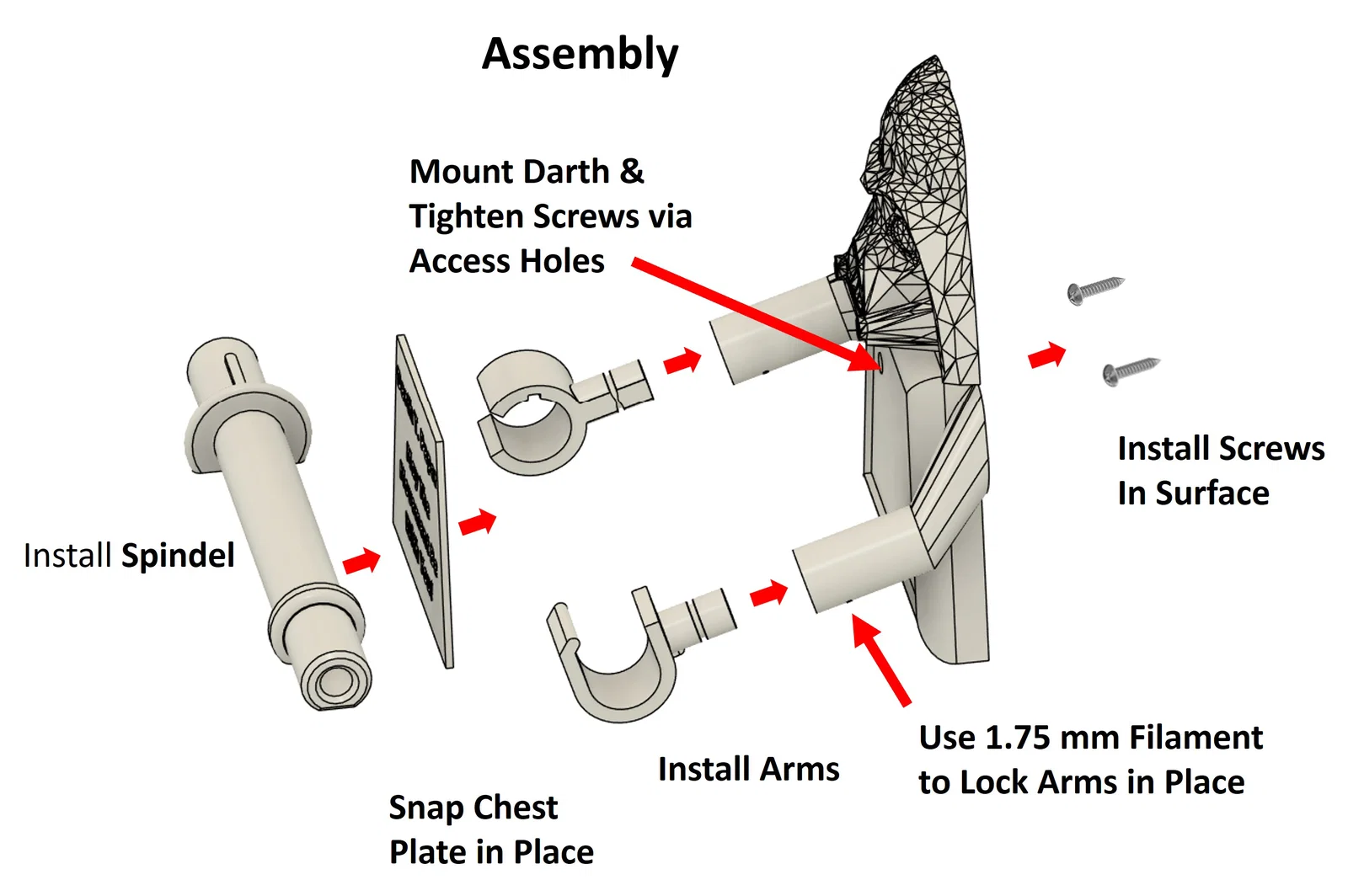 - Vật liệu: Nên sử dụng nhựa PLA màu đen cho phần thân và trục xoay, còn phần tay cầm có thể sử dụng nhựa PLA màu trắng để tạo độ tương phản nổi bật.