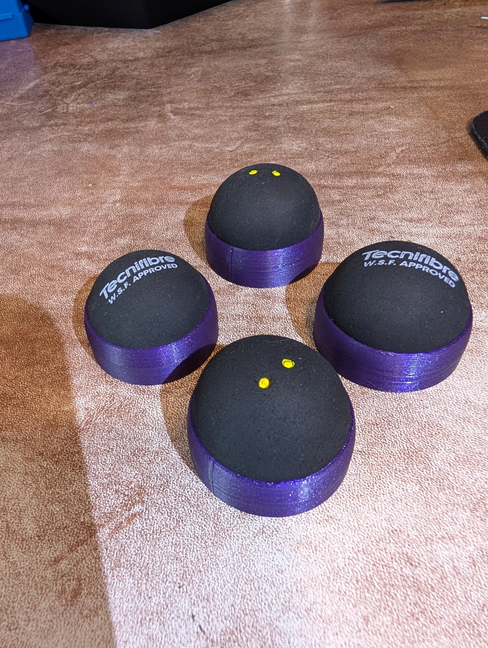 Đây là loại banh squash mình đã sử dụng. Đừng có dùng máy Dremel để cắt đôi chúng ra nhé, trừ khi bạn muốn mình bị phủ kín bởi hàng tỉ mảnh vụn cao su li ti đấy.