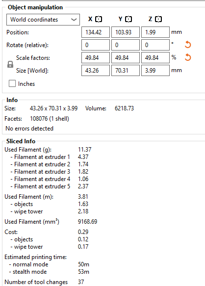 Mẫu này được thiết kế để chỉ có màu ở lớp trên cùng và dưới cùng nhằm tránh lãng phí nhựa in. Thiết kế dành cho năm màu nên bạn có thể in bằng máy MMU3.