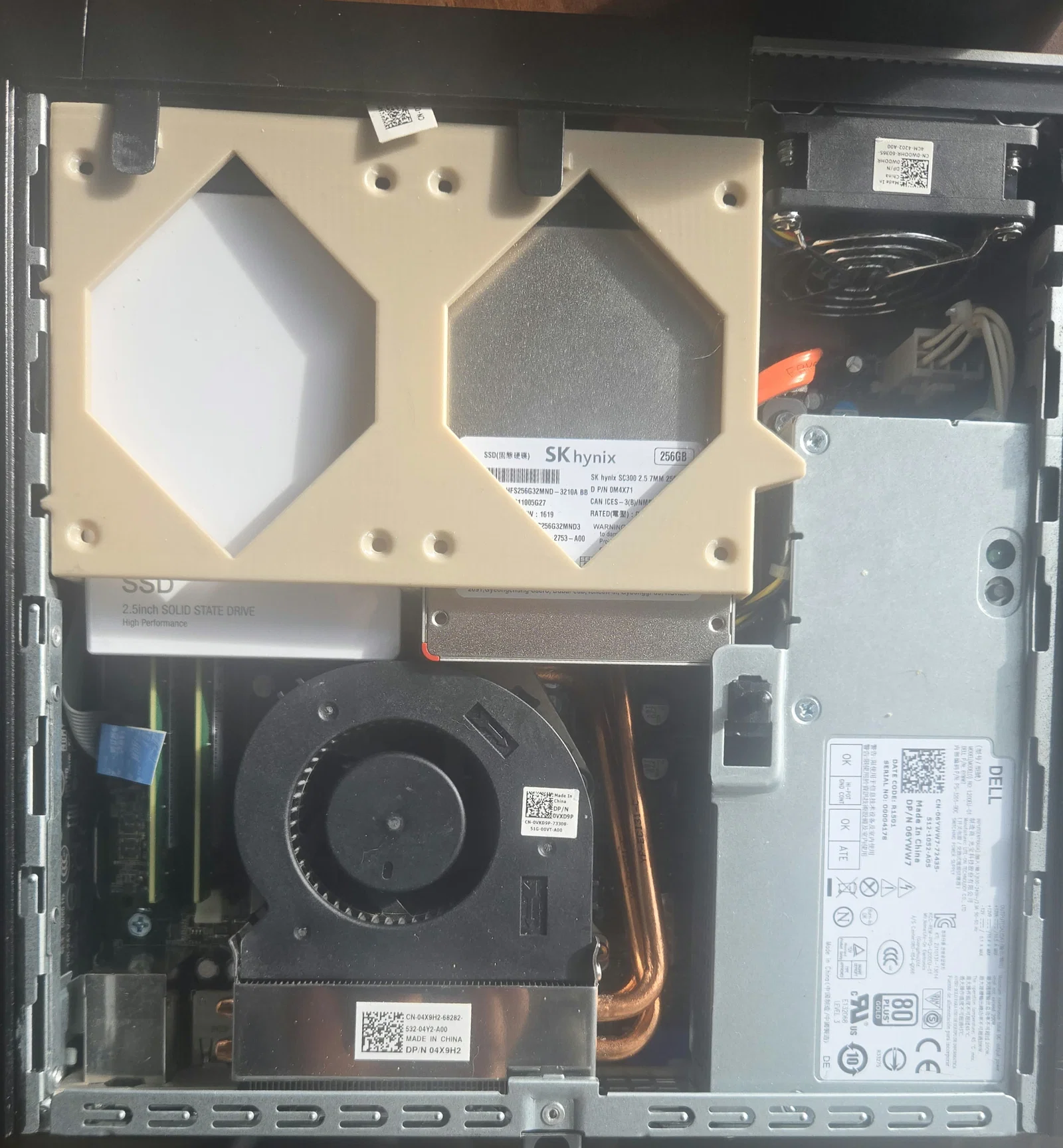 Đây là một chiếc khung để gắn cặp ổ cứng 2.5 inch vào máy tính Dell USFF. Khung này hỗ trợ các loại ổ cứng có độ dày tối đa lên đến 15mm. Khoảng cách giữa quạt CPU và ổ cứng khá chật, nên bạn có thể cần dùng cáp nguồn và cáp dữ liệu SATA loại 90 độ. Hoặc bạn cũng có thể xoay hướng ổ cứng với đầu cắm hướng về phía trước máy tính. Không gian lắp đặt khá hạn chế, nhưng tôi đã thử nghiệm và lắp thành công mà không cần dùng thêm ốc vít. Mô hình này có thể in tốt mà không cần dùng support.