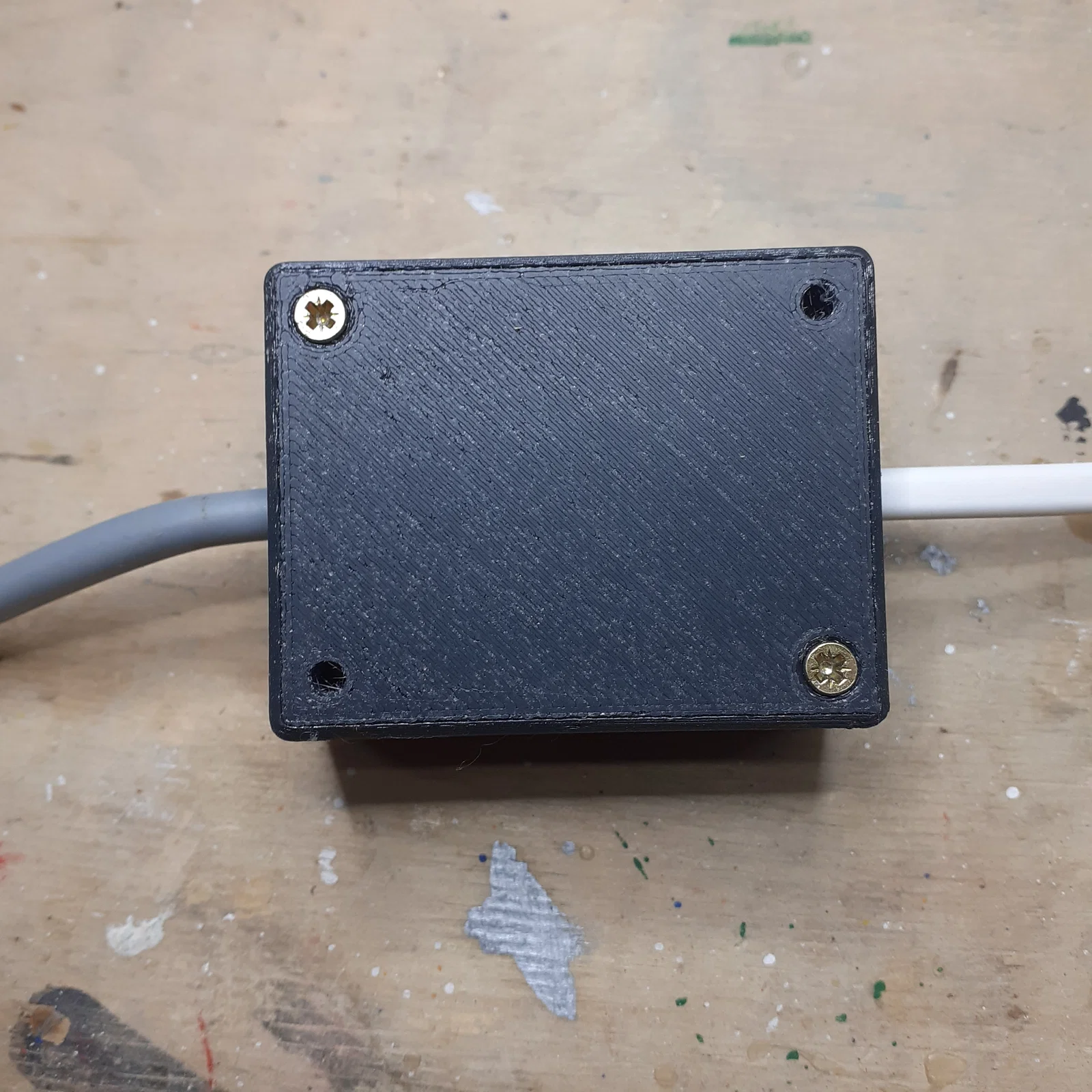 Vỏ công tắc này được thiết kế đủ không gian để lắp vừa một công tắc đơn cực và một cầu đấu dây (luster terminal) loại 2 đến 3 cực. Phần kẹp giữ dây cáp (strain relief) khá chắc chắn ngoài mong đợi của mình. Bạn sẽ cần dùng ốc vít Spax 2,5x13 để cố định chúng. Phần nắp của vỏ cũng được vặn chặt bằng ốc Spax 2,5x13 luôn nhé. Bên cạnh đó, vỏ hộp còn có sẵn hai lỗ khoan để bạn dùng ốc Spax 3x20 bắt vít trực tiếp vào kệ gỗ hoặc mặt bàn một cách tiện lợi.
