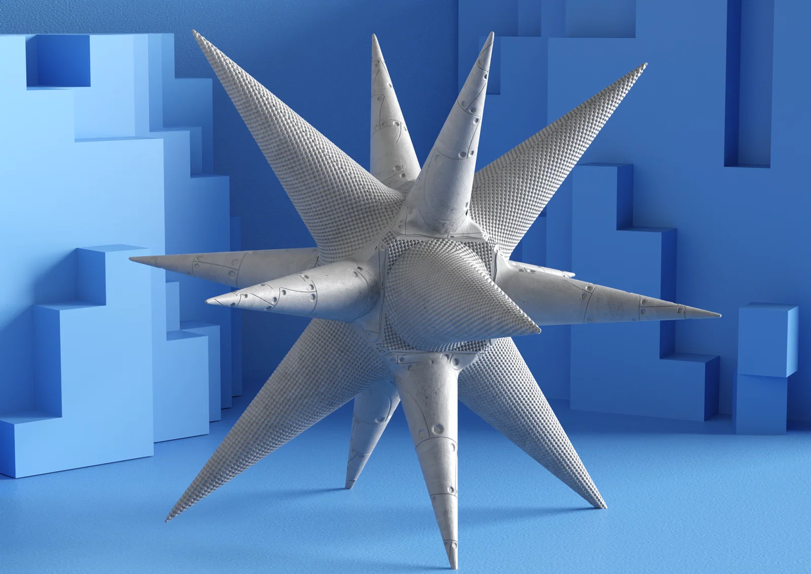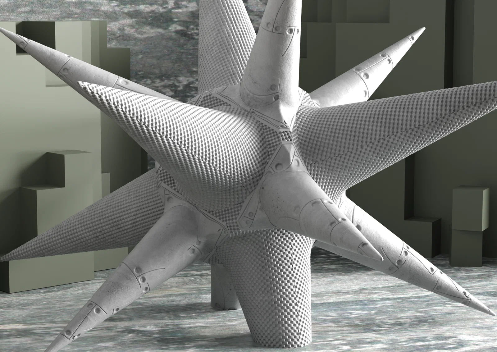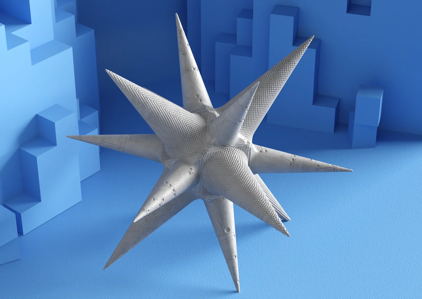 Lấy cảm hứng từ trường phái kiến trúc Brutalism, đây là thiết kế ngôi sao 12 cánh đầy góc cạnh. Mô hình gồm 2 phần in rời, lắp ráp bằng chốt, mang vẻ đẹp mạnh mẽ của bê tông và hình học.