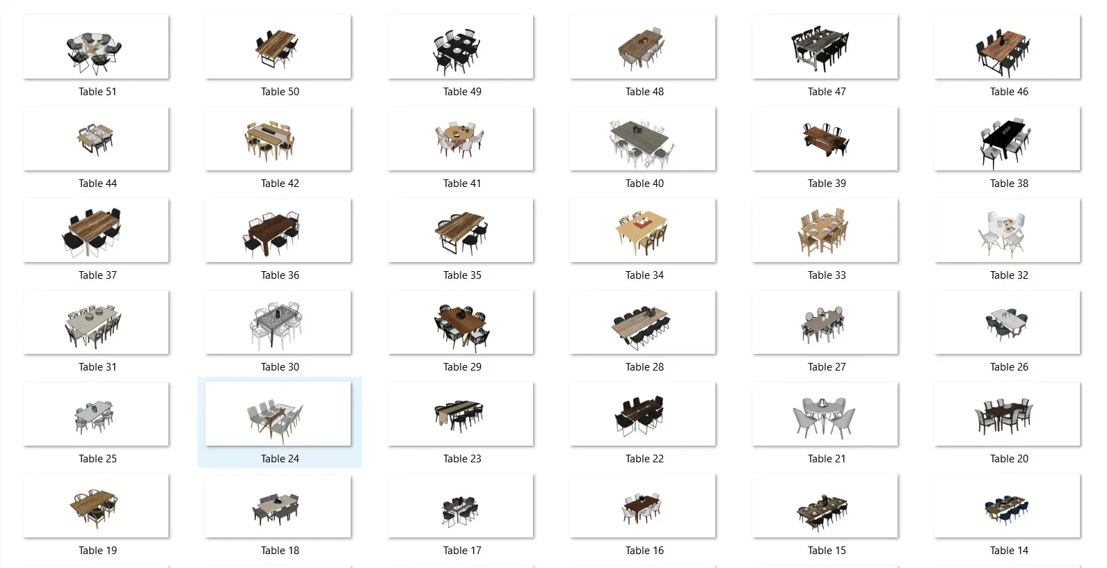 đầy đủ danh mục bàn, ghế và đồ nội thất