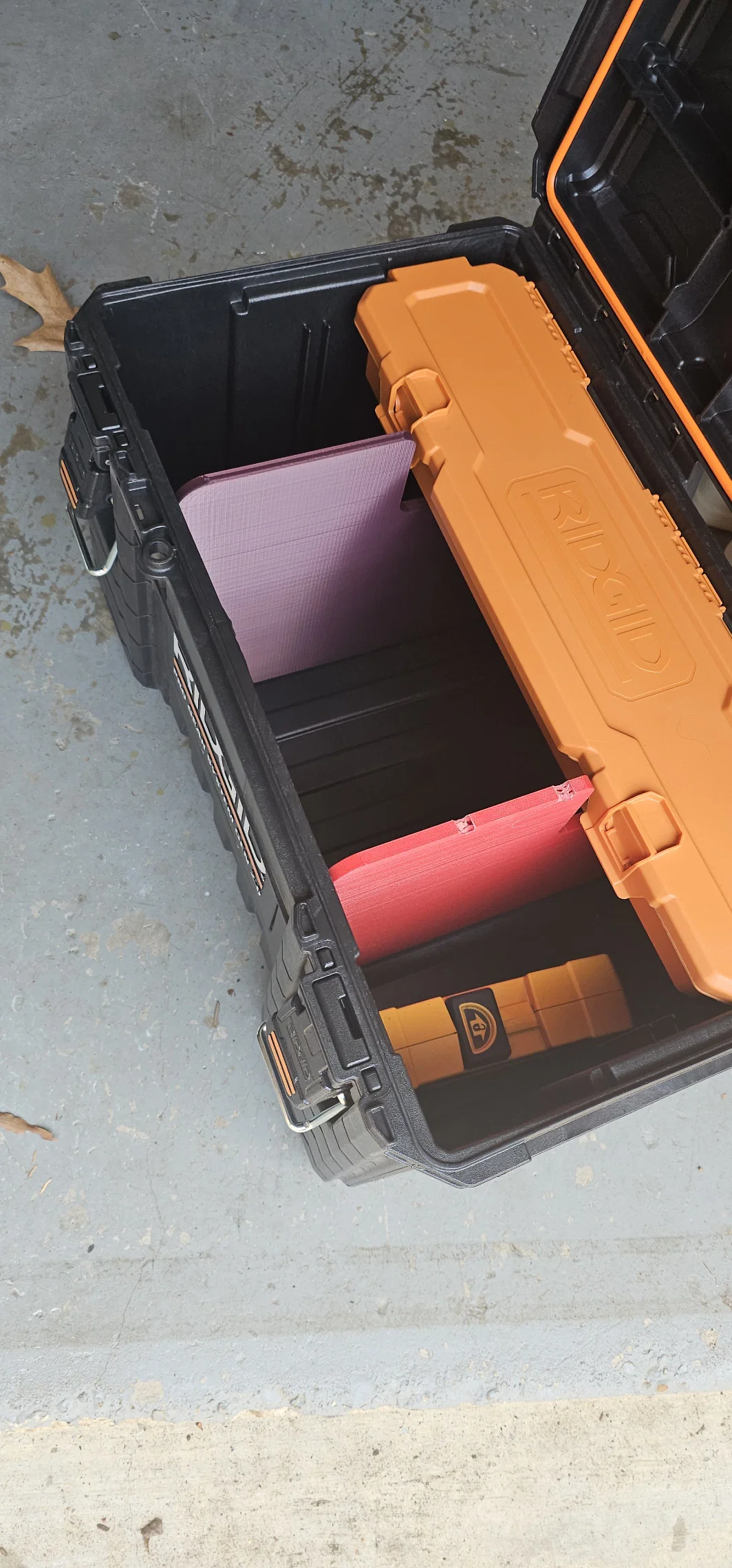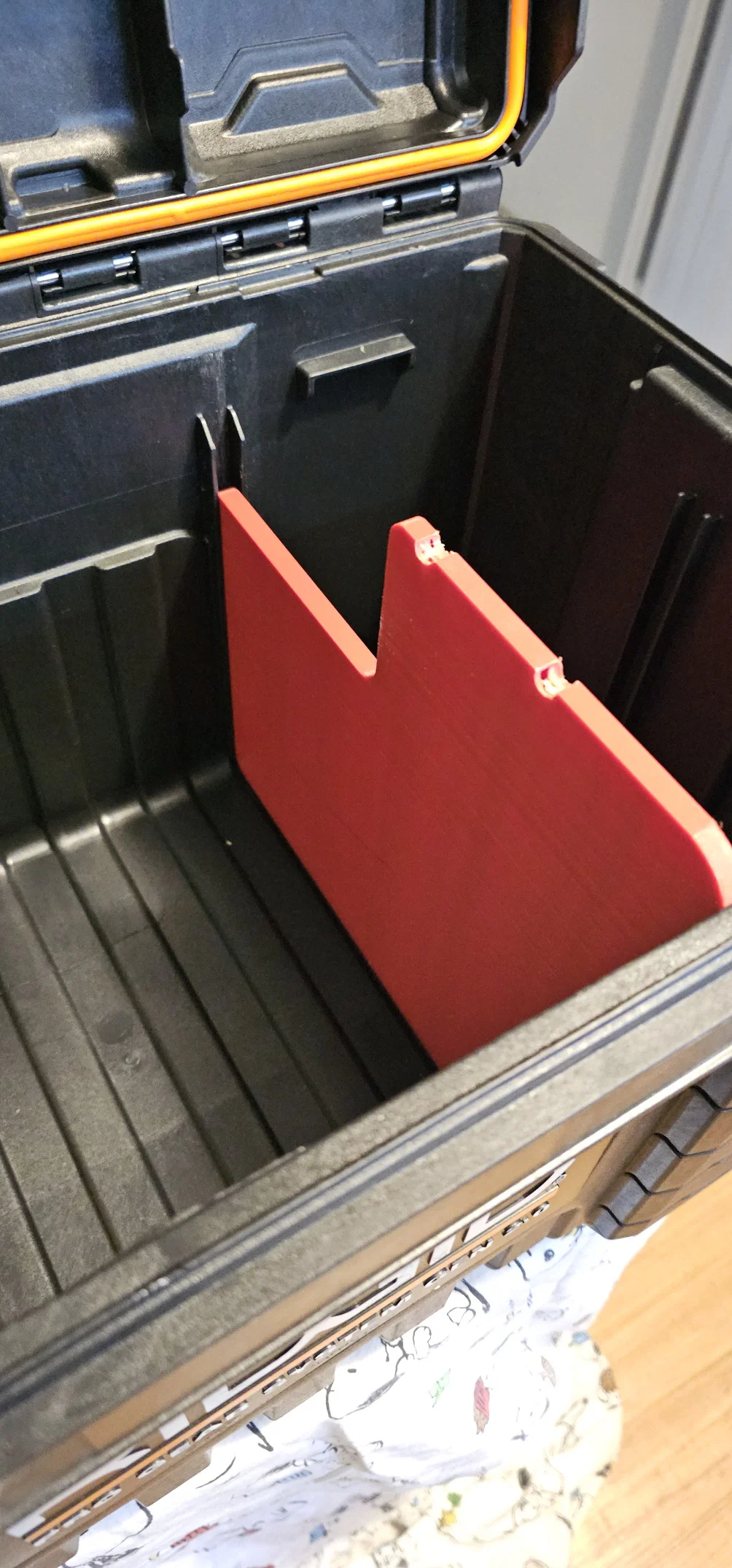 Cái thùng đựng đồ nghề Ridgid Pro Gear 2.0 cỡ trung có sẵn các khe để mình chia thùng thành ba ngăn riêng biệt, nhưng tiếc là nó không kèm theo miếng ngăn nào cả. Đây là một mẫu thiết kế đơn giản mà mình đã dựng lên để các bạn có thể tự in ra những miếng ngăn này.