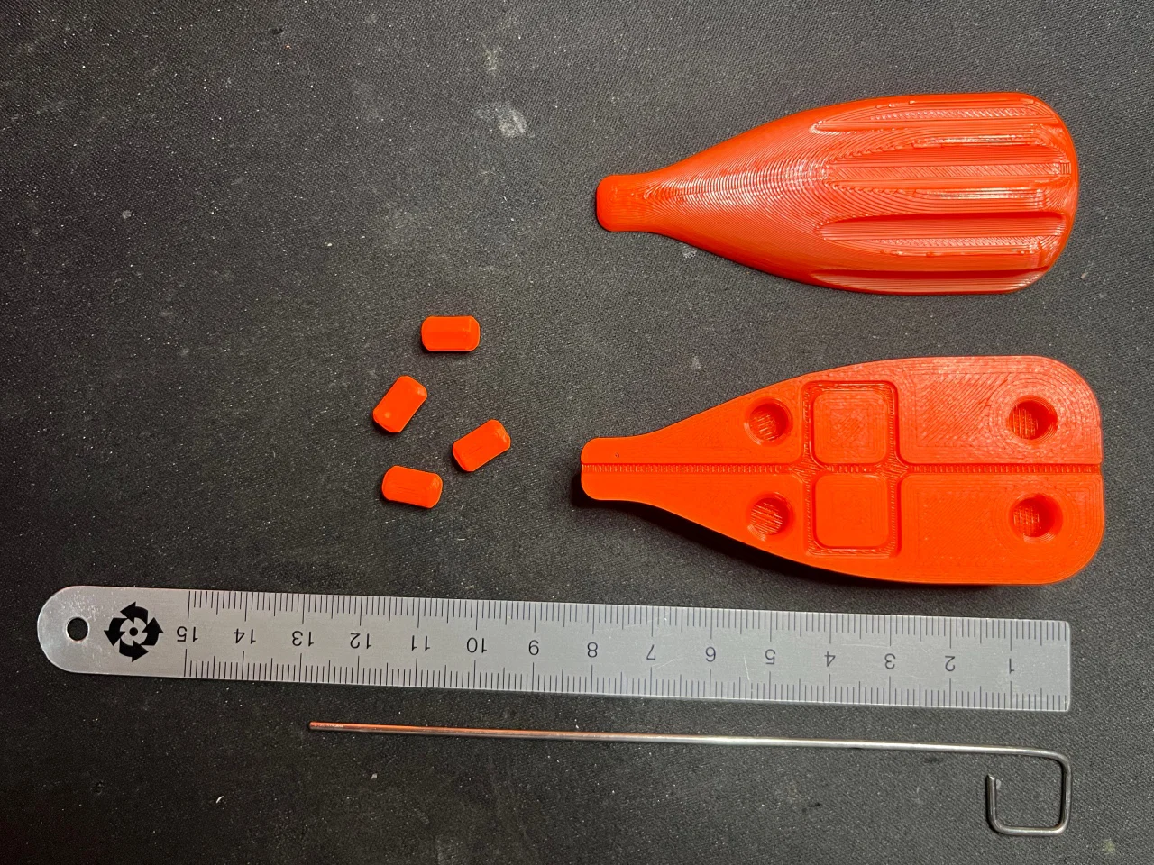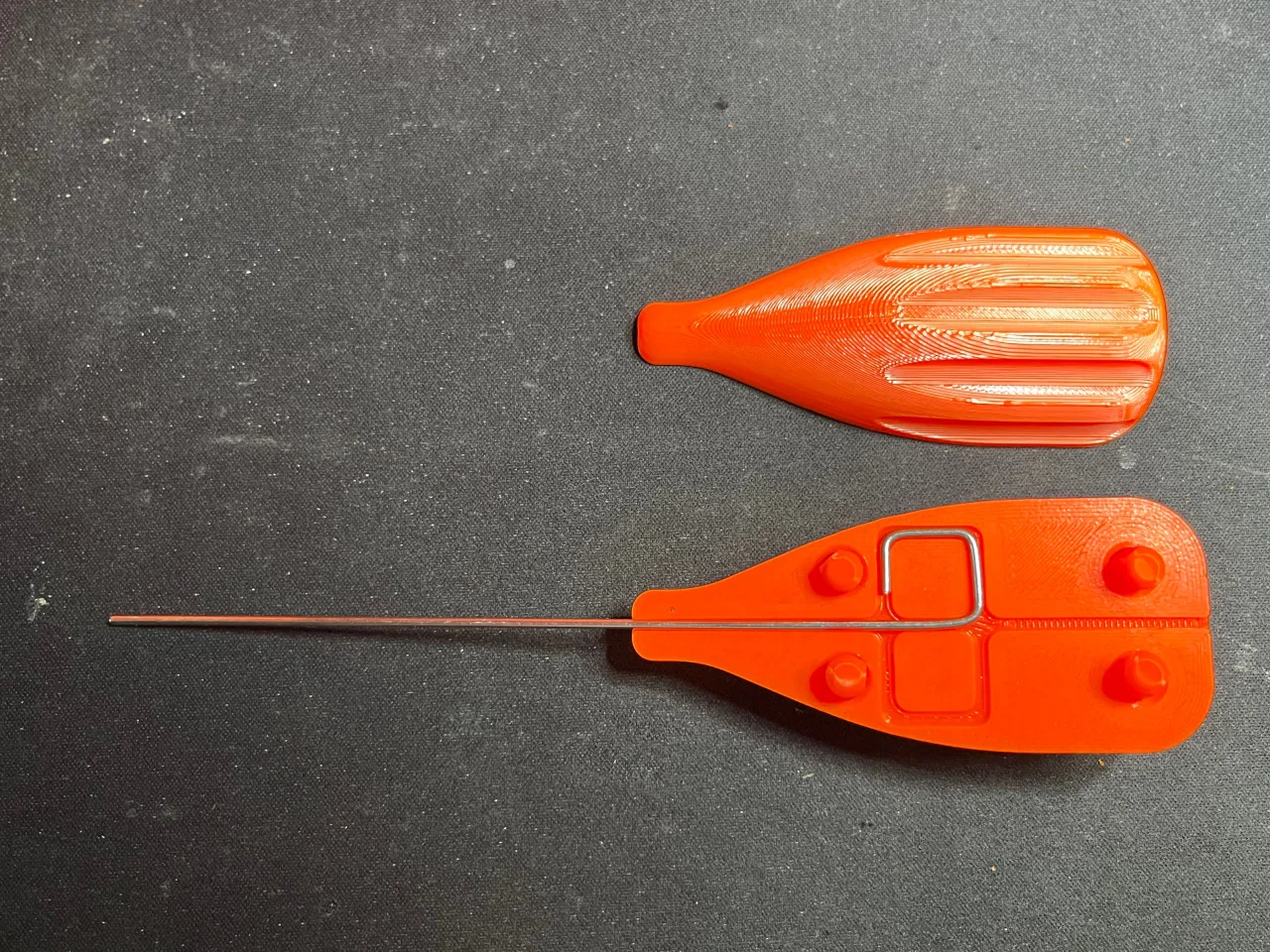 Tất cả những gì bạn cần để làm dụng cụ này là một thanh kim loại dài ít nhất 150 mm với đường kính 1,5 hoặc 1,7 mm. Bạn chỉ cần uốn thanh kim loại theo các rãnh được in sẵn trên tay cầm rồi lắp các mảnh lại với nhau - hãy xem hình minh họa nhé.