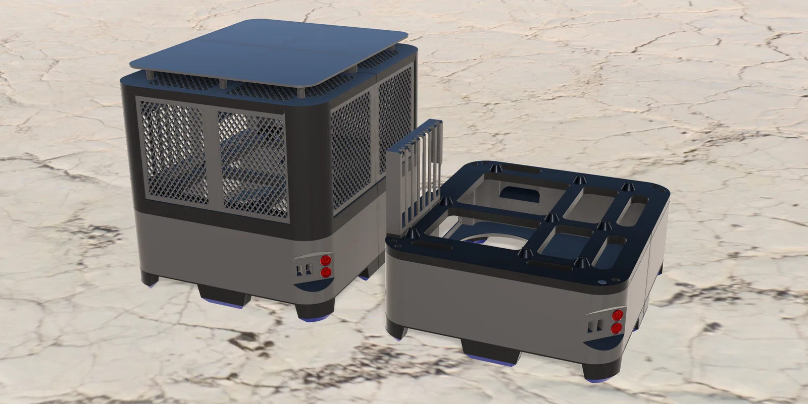 Phần đế, nắp trên và khay mainboard cần được dán lại với nhau, các phần còn lại có thể trượt khớp vào nhau. Khay mainboard đặt lên phần đế nhờ trọng lực và được cố định bằng 8 chốt. Các mặt bên được lắp theo kiểu trượt. Nắp trên được giữ bởi các trụ đỡ khay và các mặt bên, có thể lắp thêm nam châm tùy chọn. Khi di chuyển thùng máy này, hãy luôn nhấc từ phía dưới phần đế!