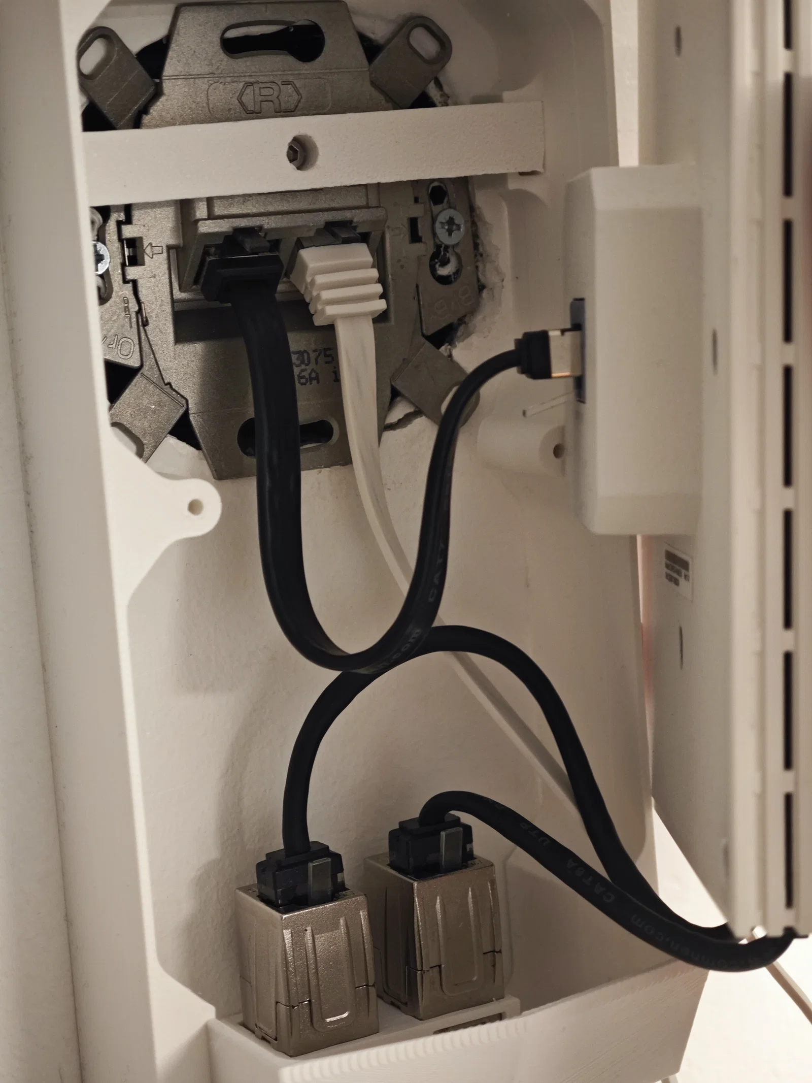 Mình quyết định chọn dòng EAP650-Wall và EAP655-Wall vì kích thước nhỏ gọn và có thêm các cổng kết nối so với các dòng AP dạng tròn truyền thống. Thiết kế này được tạo ra để lắp đặt chiếc EAP655-Wall lên các ổ cắm mạng âm tường (flush mounted RJ45), đồng thời hỗ trợ hai cổng ra dạng mô-đun Keystone kiểu gài (snap-in).