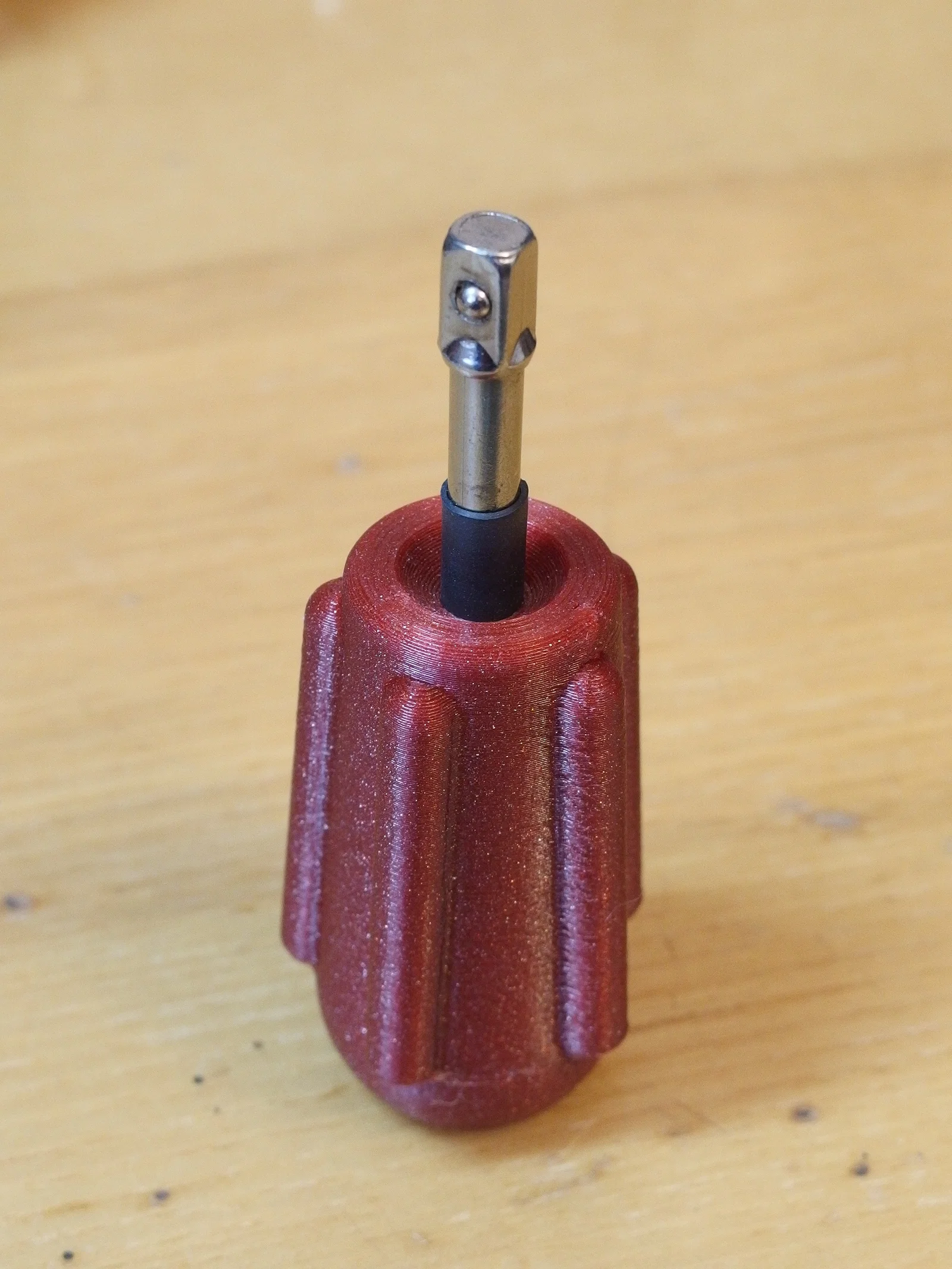 Đây là một mẫu in 3D vô cùng tiện lợi được thiết kế để làm tay cầm cho các loại đầu khẩu hoặc dụng cụ vặn có kích thước chuẩn 1/4 inch. Nếu bạn đã có sẵn các đầu vặn mà lại thiếu đi một tay cầm chắc chắn để thao tác, thì bản in này chính là giải pháp thay thế hoàn hảo. Với cấu tạo thông minh, nó giúp bạn dễ dàng cầm nắm và tạo lực vặn tốt hơn trong các công việc sửa chữa nhẹ nhàng tại nhà.