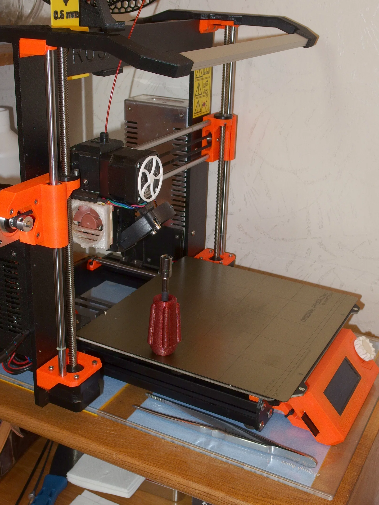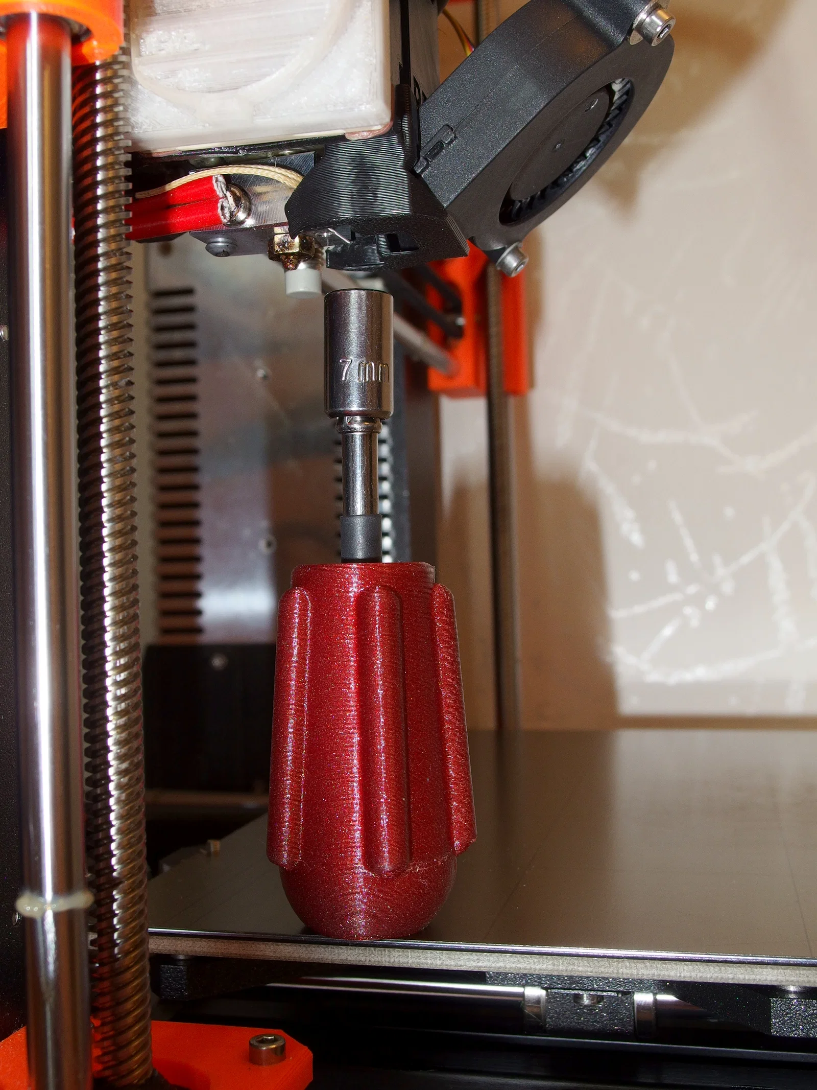 Điểm đặc biệt của thiết kế này chính là phần lỗ lắp đặt có đường kính 6mm với mặt phẳng ở đầu, giúp cố định dụng cụ một cách chắc chắn, không bị xoay tròn khi đang sử dụng. Hình dáng của tay cầm được bo tròn với các rãnh dọc, tạo độ bám tay rất tốt, tránh trơn trượt ngay cả khi tay bạn đang đổ mồ hôi hoặc dính một chút dầu mỡ. Sản phẩm này tỏ ra đặc biệt hữu ích trong việc hỗ trợ thay thế nozzle (đầu in) cho các máy in 3D như Prusa, vốn đòi hỏi sự khéo léo và thao tác vặn chính xác.