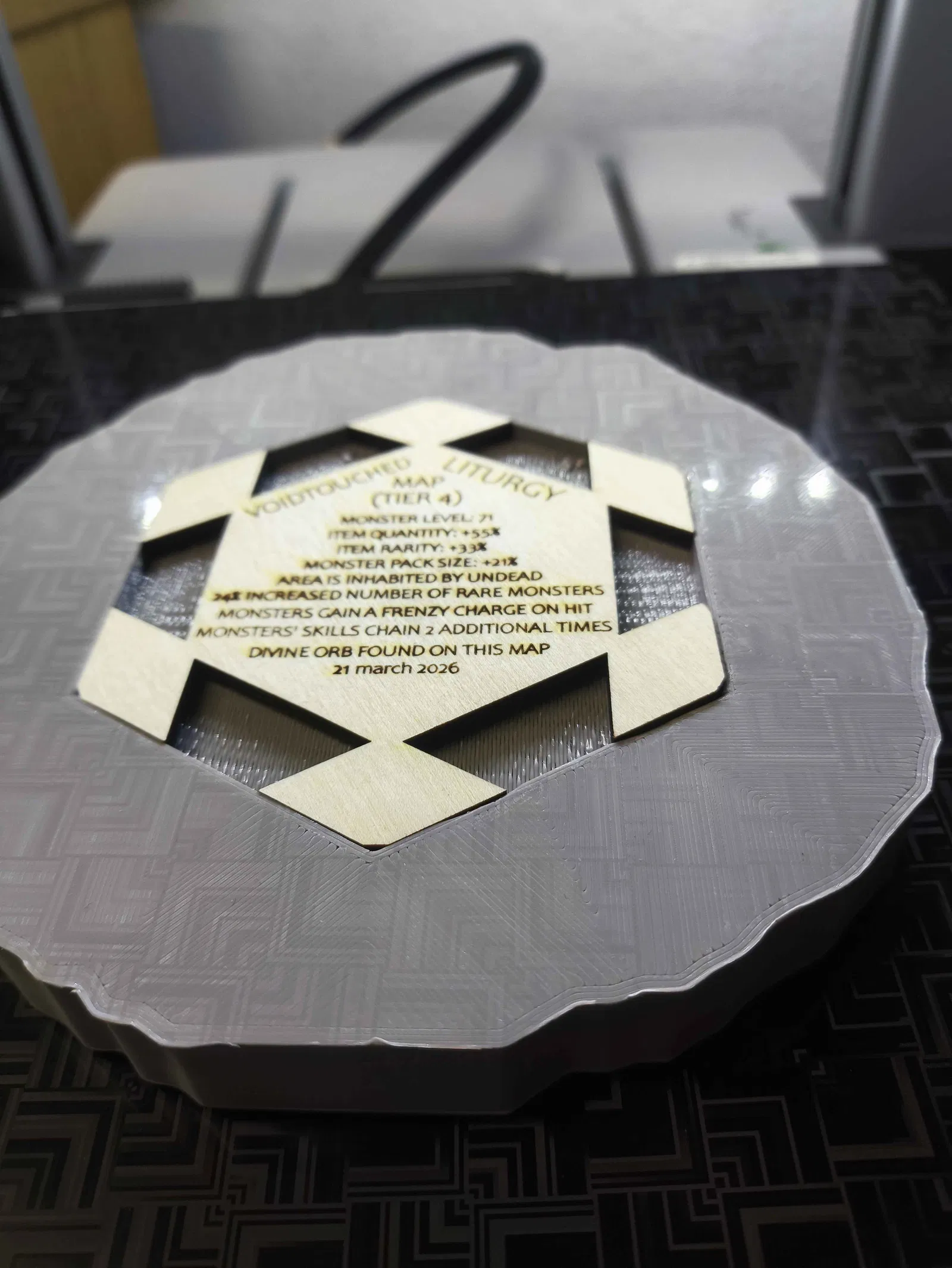 Trong lúc tìm kiếm những vật phẩm in 3D liên quan đến Path of Exile mà không phải là mấy loại tiền tệ (currency orbs) nhan nhản trên mạng, mình đã nảy ra ý tưởng này. Đây là bản mẫu (template) Map Stone giúp anh em lưu giữ những kỷ niệm đẹp trong game ra ngoài đời thực.