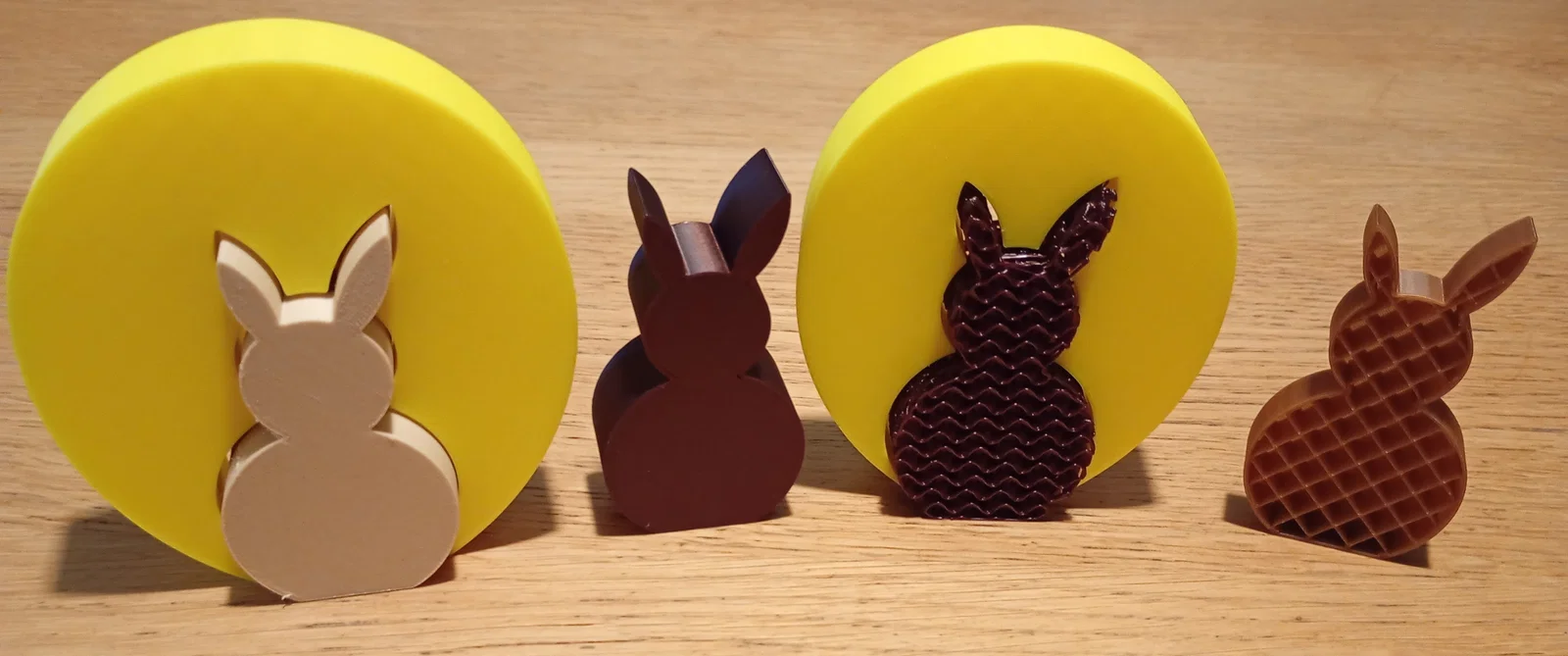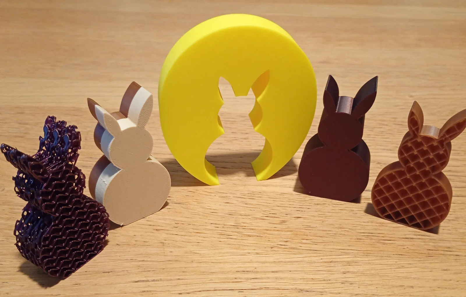 Điểm thú vị của mô hình này nằm ở tính linh hoạt trong thiết kế. Bạn có thể in các chú thỏ với bề mặt đặc hoặc tận dụng kiểu in để lộ cấu trúc infill bên trong, tạo ra vẻ ngoài đầy phá cách và nghệ thuật. Với kích thước nhỏ gọn, món đồ này không tốn nhiều diện tích mà vẫn gây ấn tượng mạnh nhờ vào sự kết hợp màu sắc giữa chú thỏ và lớp vỏ trứng. Đây là một dự án in 3D nhanh chóng, phù hợp cho những người mới bắt đầu muốn thử nghiệm các cấu trúc in ấn thú vị.