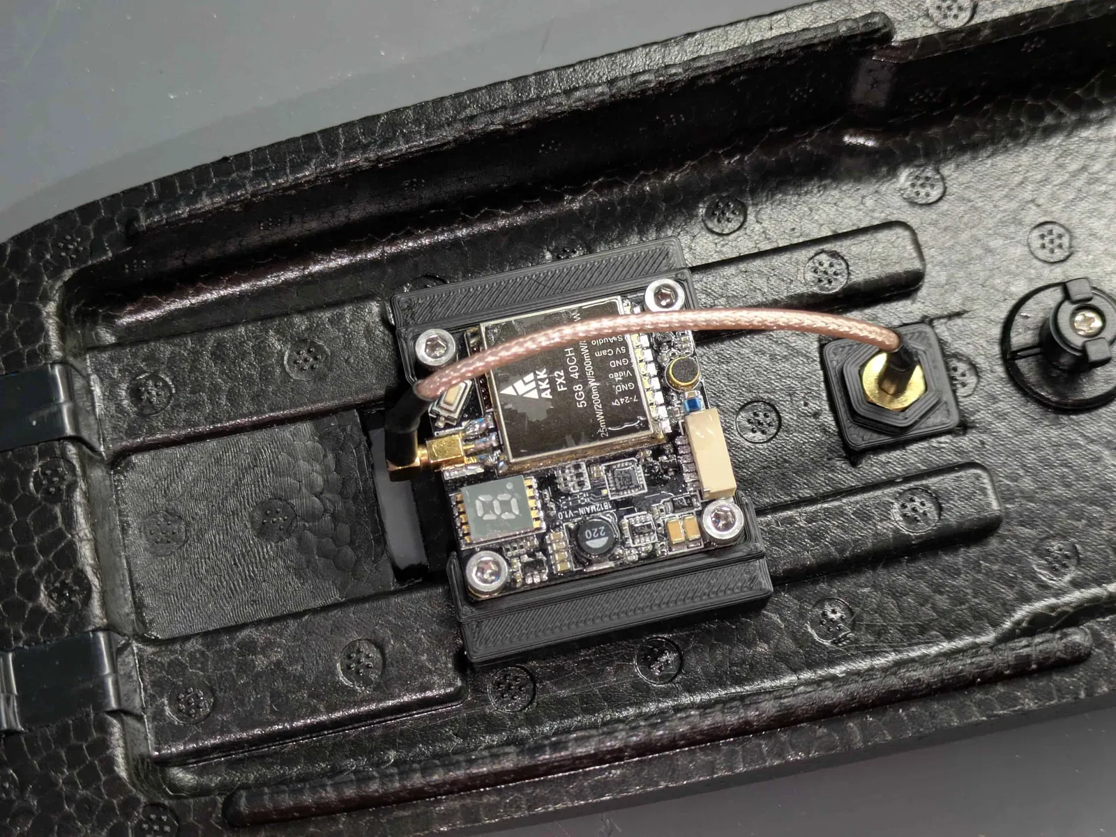 Đây là phiên bản thiết kế lại hoàn toàn từ mẫu ZOHD Nano Talon Evo VTX and Antenna Mount gốc của Beetlebeetle. Bản remix của mình hỗ trợ bất kỳ bộ phát video (VTX) kích thước 36mm² tiêu chuẩn nào (lỗ bắt ốc 30.5mm²) và có lỗ thông cho đầu nối anten SMA dạng bảng (panel mount) không gập góc. Mình cũng đã thực hiện một vài cải tiến cho thiết kế này, bạn có thể xem chi tiết bên dưới.### VTX MountGiá đỡ VTX được thiết kế để dán vào mặt dưới của nắp khoang mũi, ngay phía sau khe lấy gió, giúp cung cấp luồng khí làm mát hiệu quả cho VTX. Bên dưới giá đỡ còn có khoảng trống để gắn thêm tản nhiệt cho VTX ngay trên đường đi của luồng gió. VTX sẽ được bắt chặt vào khung in bằng 4 ốc M3x5mm.### Antenna PassthroughBộ phận truyền anten được thiết kế để dán cố định vào lỗ cắt vuông khoảng 15x15mm trên nắp khoang mũi. Sau đó, đầu nối anten SMA dạng bảng sẽ được lắp vào và siết chặt.Mình đã đính kèm các tệp STEP và Fusion 360 Archive để các bạn dễ dàng tùy chỉnh thiết kế nếu cần.Cảm ơn Beetlebeetle vì thiết kế gốc tuyệt vời này!CẬP NHẬT: Mình đã bổ sung thêm một biến thể được điều chỉnh nhẹ cho dòng AKK RaceRanger VTX. Nó có thêm các lỗ cắt để phù hợp với tản nhiệt lớn ở mặt dưới của dòng VTX này.