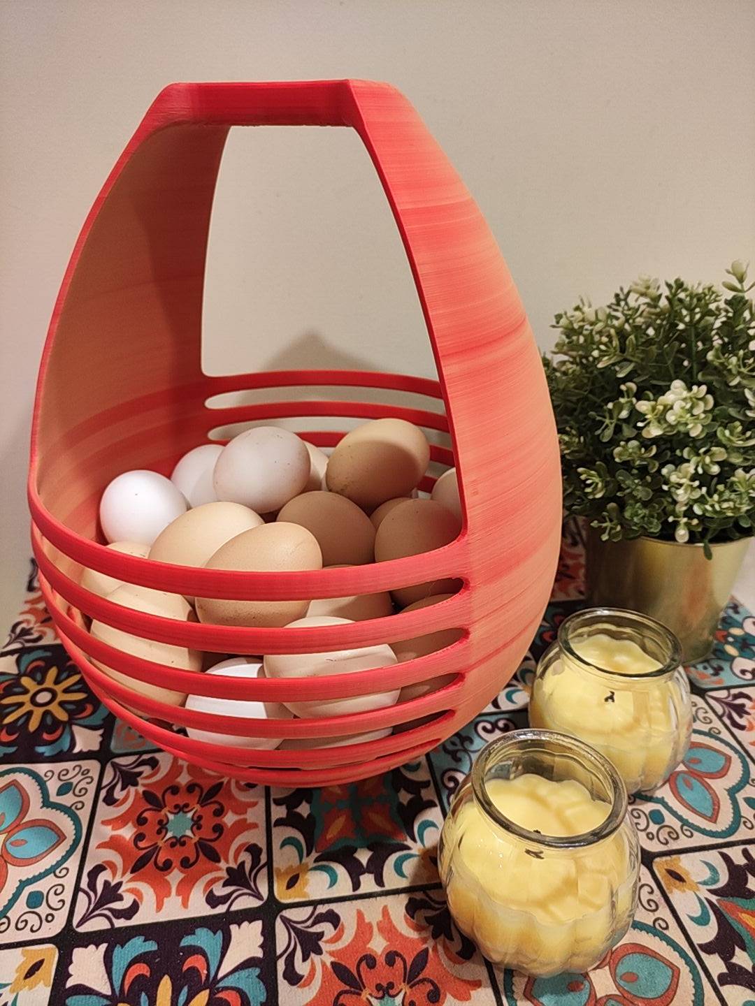 Giỏ đủ chắc chắn (đã thử nghiệm đựng thành công 40 quả trứng), nhưng để đảm bảo an toàn hơn, bạn có thể tăng độ dày infill hoặc số lượng tường (wall count).