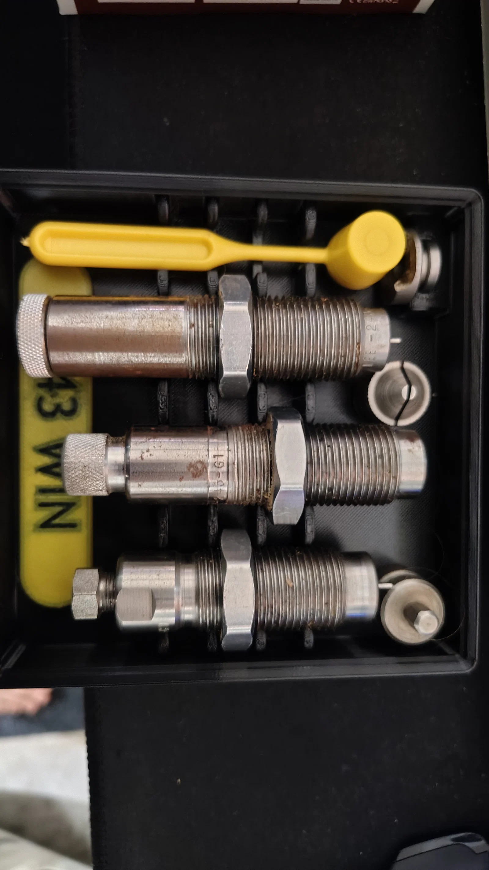 Mình đã tạo cái khay này bằng Gridfinity generator (không phải AI), sau đó thiết kế phần lòng bên trong để vừa vặn cho 3 khuôn (die), một muỗng đong thuốc súng và khay giữ vỏ đạn. Khá ngạc nhiên là chưa thấy ai làm khay nạp đạn kiểu Gridfinity, mình muốn nó nằm cố định trong ngăn kéo và chiếm ít diện tích hơn. Ảnh chụp sản phẩm in là phiên bản cũ hơn một chút, cần thêm một chút support do chiều dài của nó. Các vòng khóa sẽ có đủ không gian vì khoảng cách giữa mỗi thanh đỡ là 10mm, cho phép bạn xếp so le nếu cần. Phần bảng tên có thể in đa màu hoặc bạn có thể "khắc" chữ trong slicer để đánh dấu loại khuôn cần dùng.