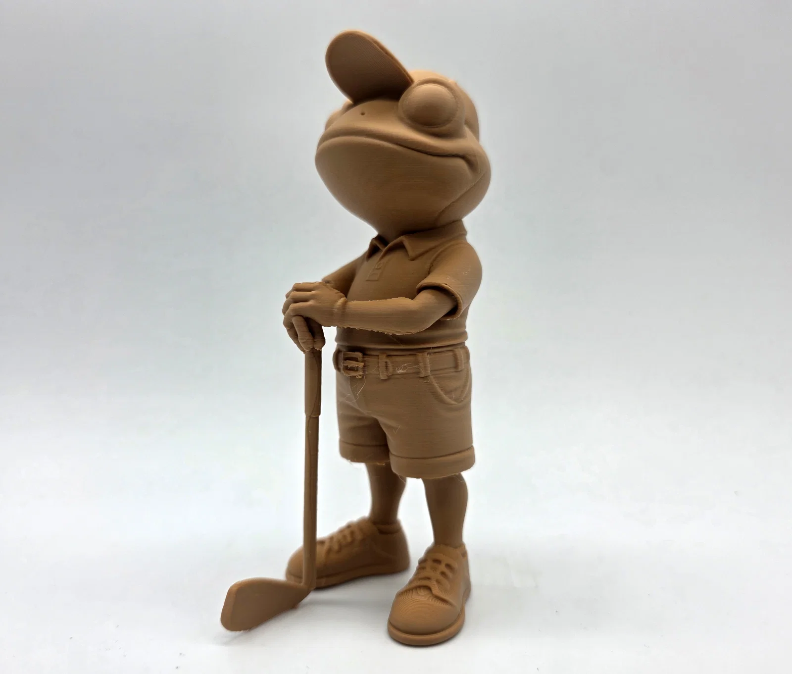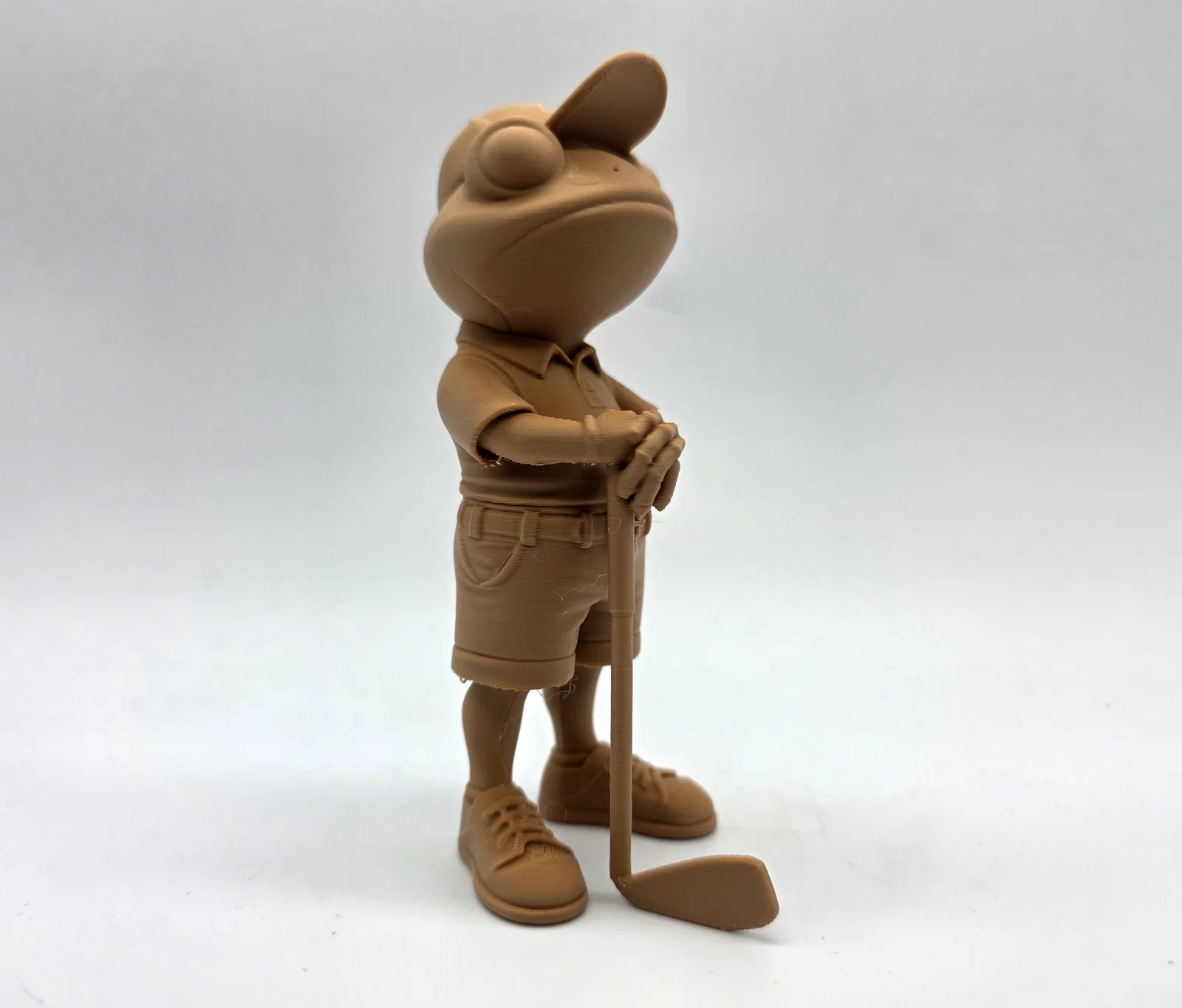 Hoppy Gilmore, chú ếch chơi golf chuyên nghiệp. Đã lên đồ sẵn sàng để ra sân và vung gậy. Mô hình cần rất ít support, cực kỳ thích hợp để trang trí bàn làm việc.