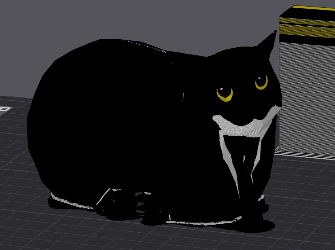 Một mô hình của Floating Maxwell the Cat, được chỉnh sửa để in nhiều màu sắc bằng cách sử dụng Bambu AMS.