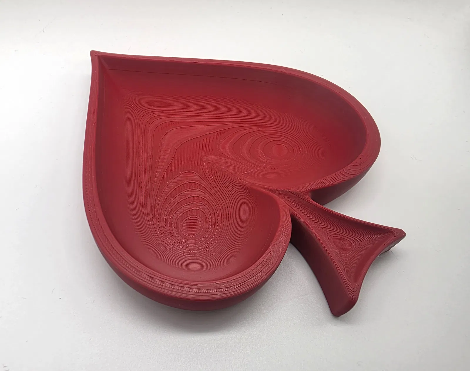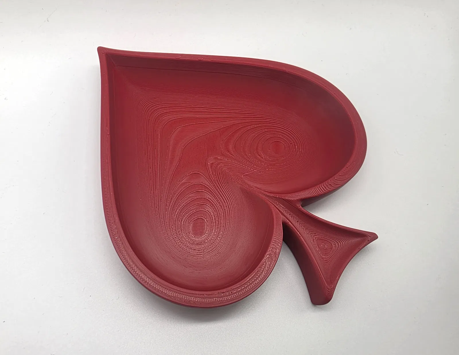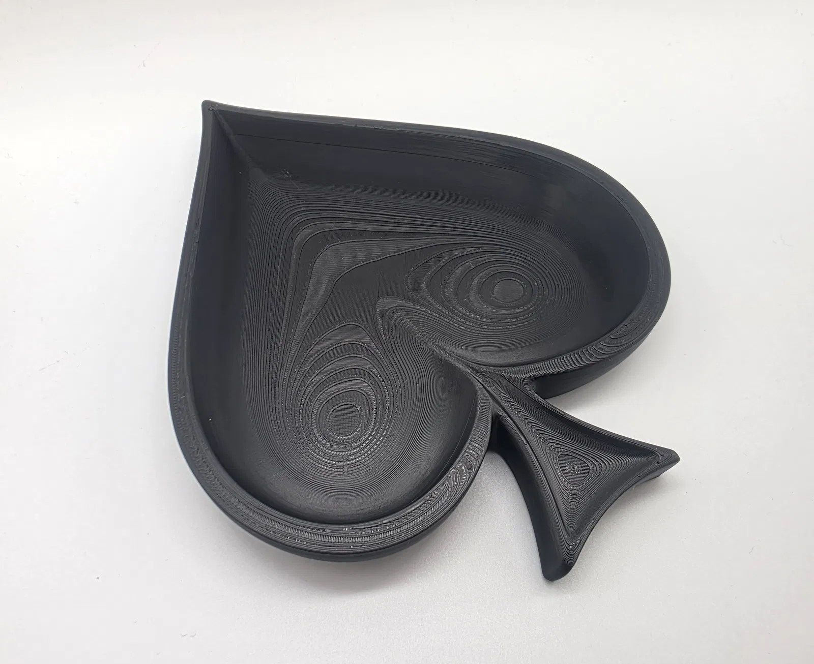 Cái khay hình quân bích (spade) nông, thích hợp để đựng chìa khóa hoặc trang sức. Không cần in support. Bạn có thể phóng to thu nhỏ tùy ý. Rất dễ in.
