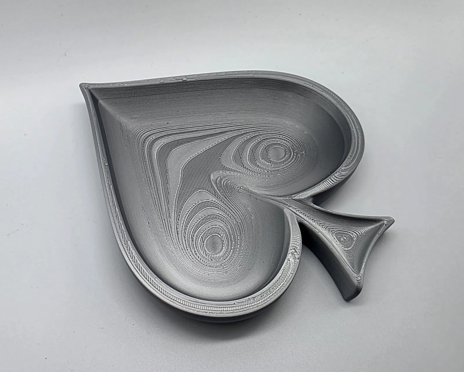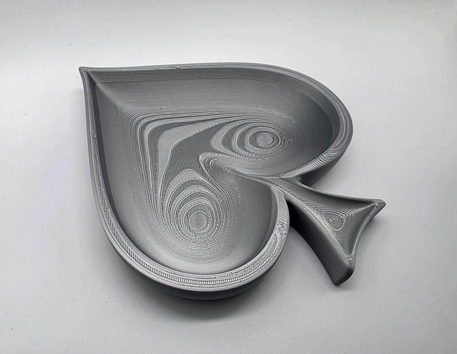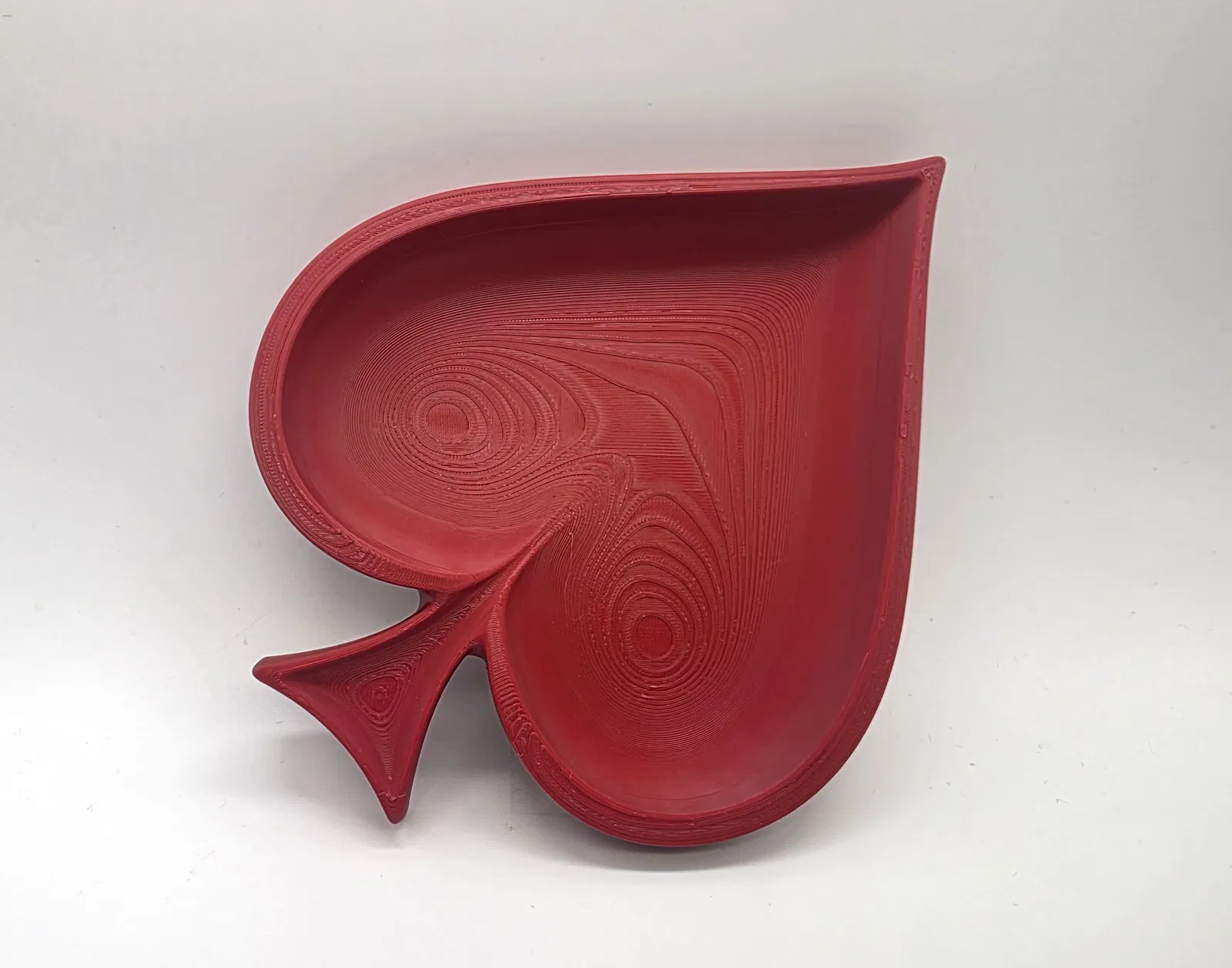 Cái khay hình quân bích (spade) nông, thích hợp để đựng chìa khóa hoặc trang sức. Không cần in support. Bạn có thể phóng to thu nhỏ tùy ý. Rất dễ in.