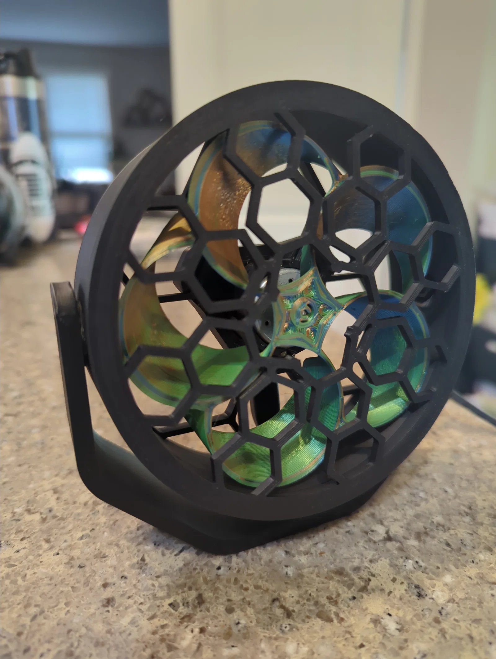 Chiếc quạt để bàn chạy bằng cổng USB đơn giản, đáp ứng mọi nhu cầu làm mát nhẹ nhàng và hiệu quả. Thiết kế bao gồm 5 bộ phận in 3D dễ dàng lắp ráp, lý tưởng để đặt trên bàn làm việc hoặc làm mát thiết bị điện tử.