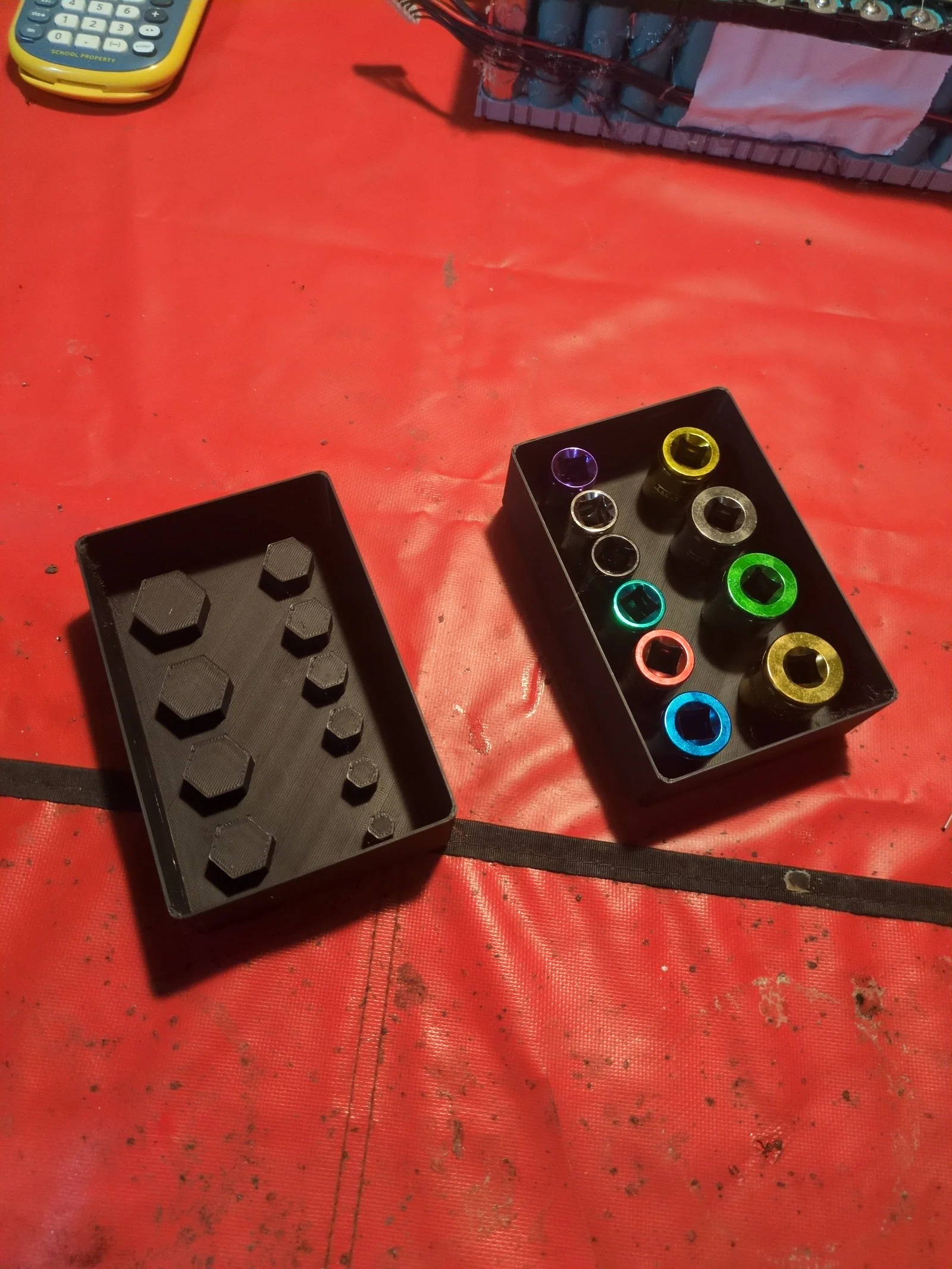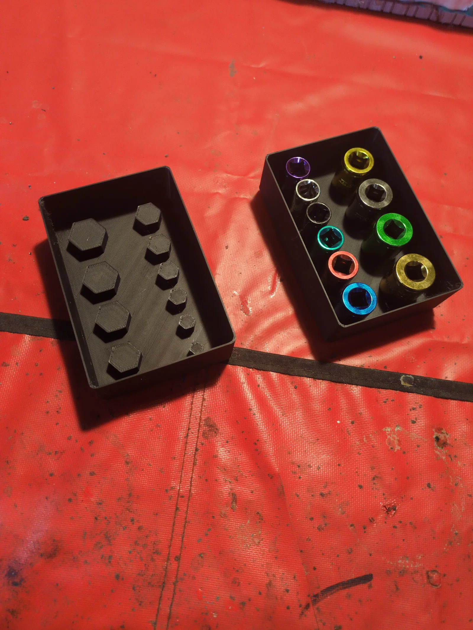 Bạn đang tìm cách sắp xếp bộ đầu khẩu 3/8 inch của mình một cách chuyên nghiệp? Hãy thử ngay mẫu khay Gridfinity inverse socket organizers 2x3 này. Với thiết kế dạng úp ngược các đầu khẩu vào các trụ lục giác, sản phẩm giúp bạn phân loại và truy xuất nhanh chóng các loại đầu khẩu hệ SAE từ 5/16" đến 7/8" hay hệ mét từ 10mm đến 19mm. Mẫu in này thuộc dòng "lite" không có lỗ nam châm, giúp tối ưu thời gian và nguyên liệu khi in 3D. Đây là món phụ kiện không thể thiếu cho bàn làm việc của những người thợ cơ khí hoặc những ai đam mê DIY, giúp không gian làm việc luôn gọn gàng, ngăn nắp và chuyên nghiệp hơn hẳn.