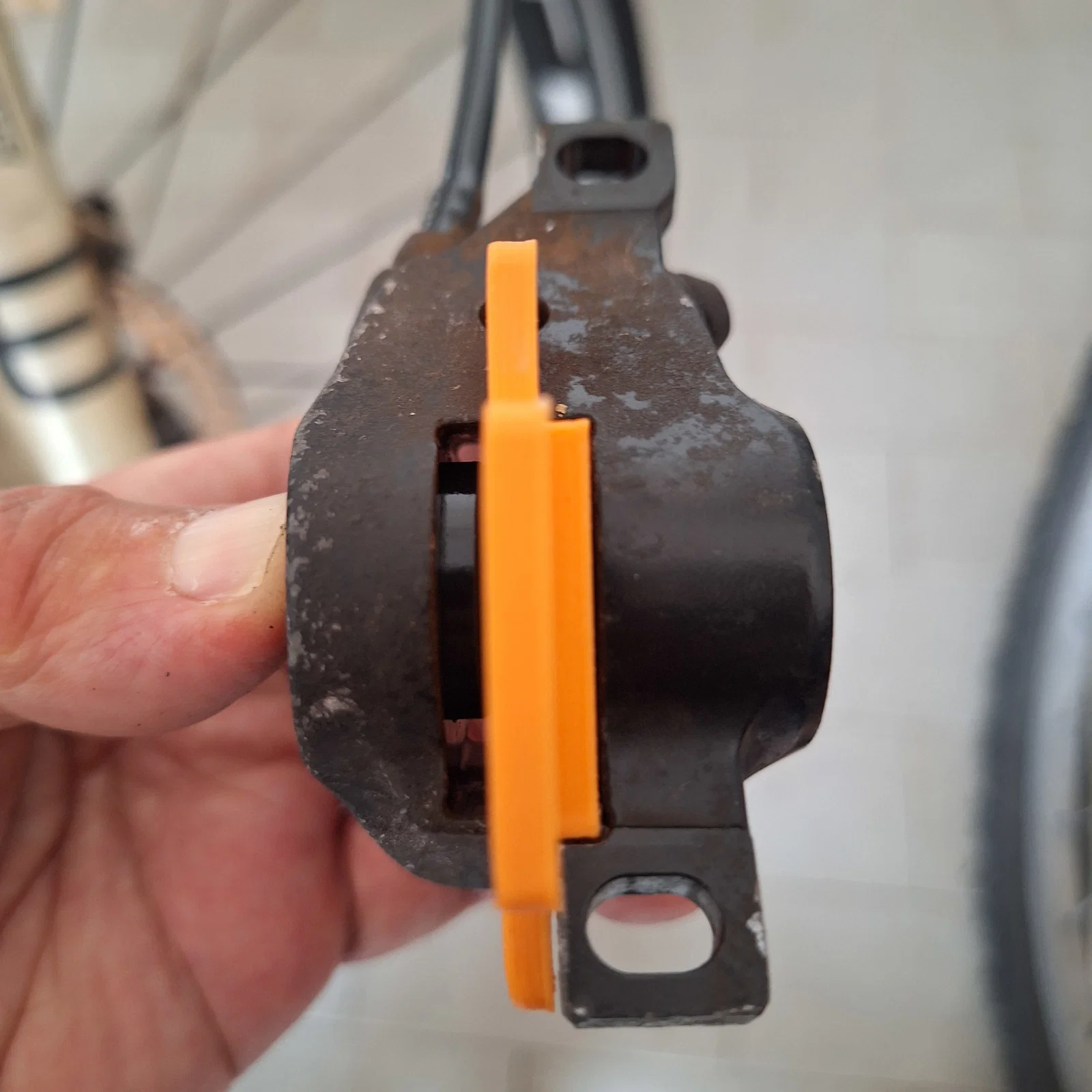 Mình đã thiết kế cái kẹp này để vừa vặn với cùm phanh thủy lực Magura MT2 (đời 2020). Công cụ này giúp cố định piston ở một bên, cho phép piston ở bên đối diện đẩy ra khỏi cùm phanh để bạn có thể vệ sinh và bôi trơn dễ dàng.