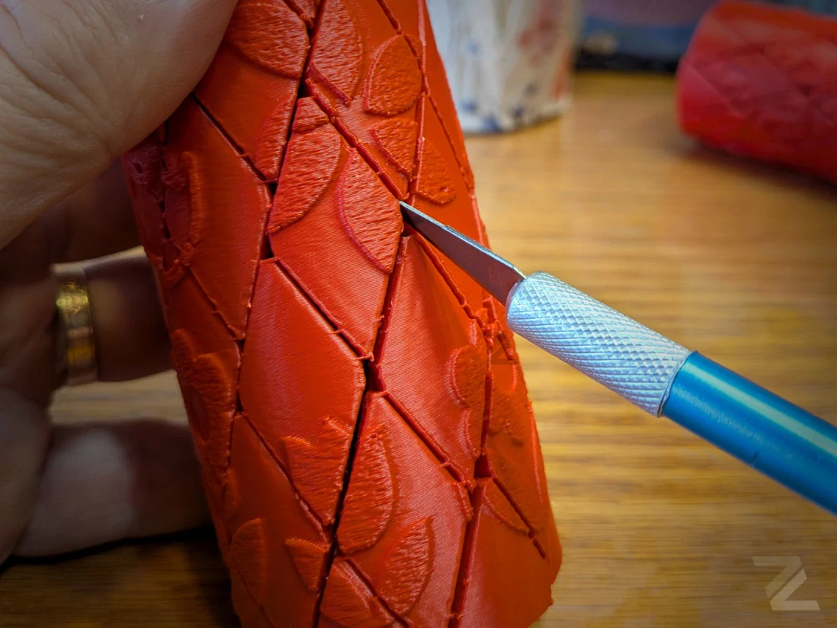 - Xử lý sau in: Sau khi in xong, bạn hãy dùng một lưỡi dao mỏng nhẹ nhàng tách các điểm kết nối phụ tạm thời. Thao tác này sẽ "giải phóng" cơ chế để các mảnh ghép có thể trượt trơn tru.