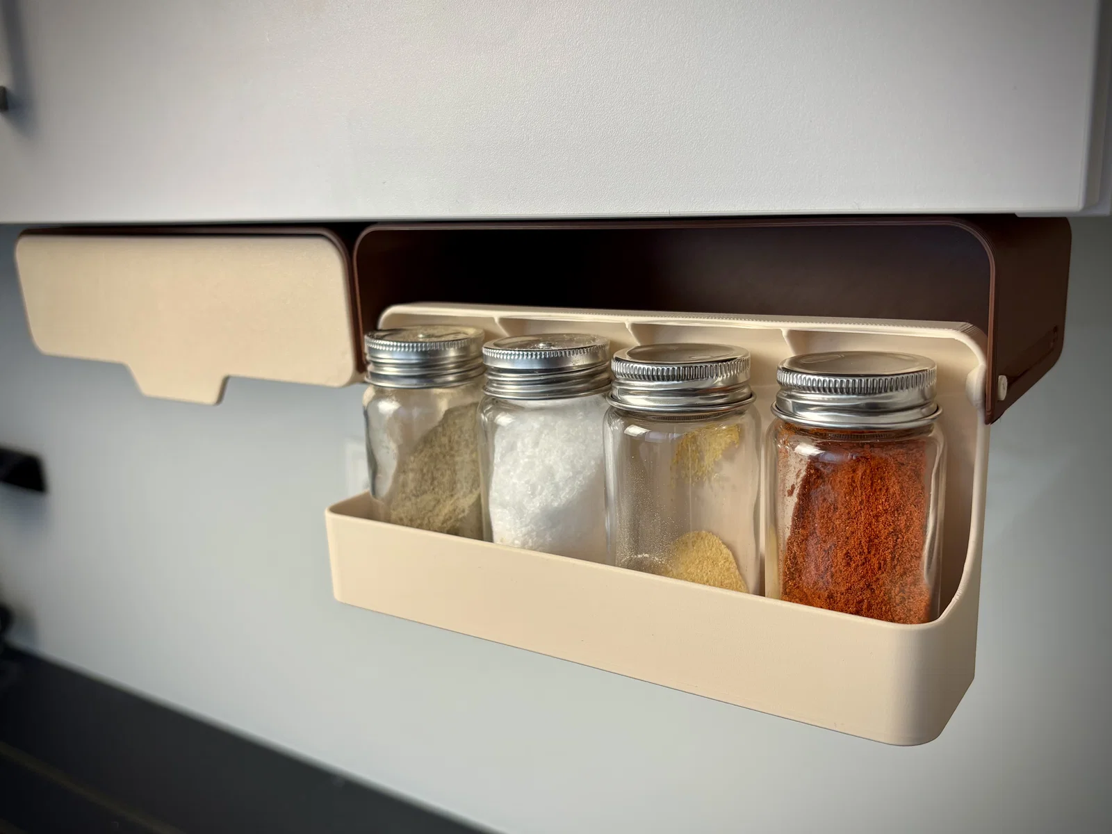 Spice Rack Organizer là giải pháp hoàn hảo để lưu trữ lọ gia vị dưới gầm tủ bếp, giúp tiết kiệm không gian và giữ cho căn bếp luôn ngăn nắp. Thiết kế thông minh, dễ dàng in 3D mà không cần support và tương thích tốt với nhiều loại lọ phổ biến.