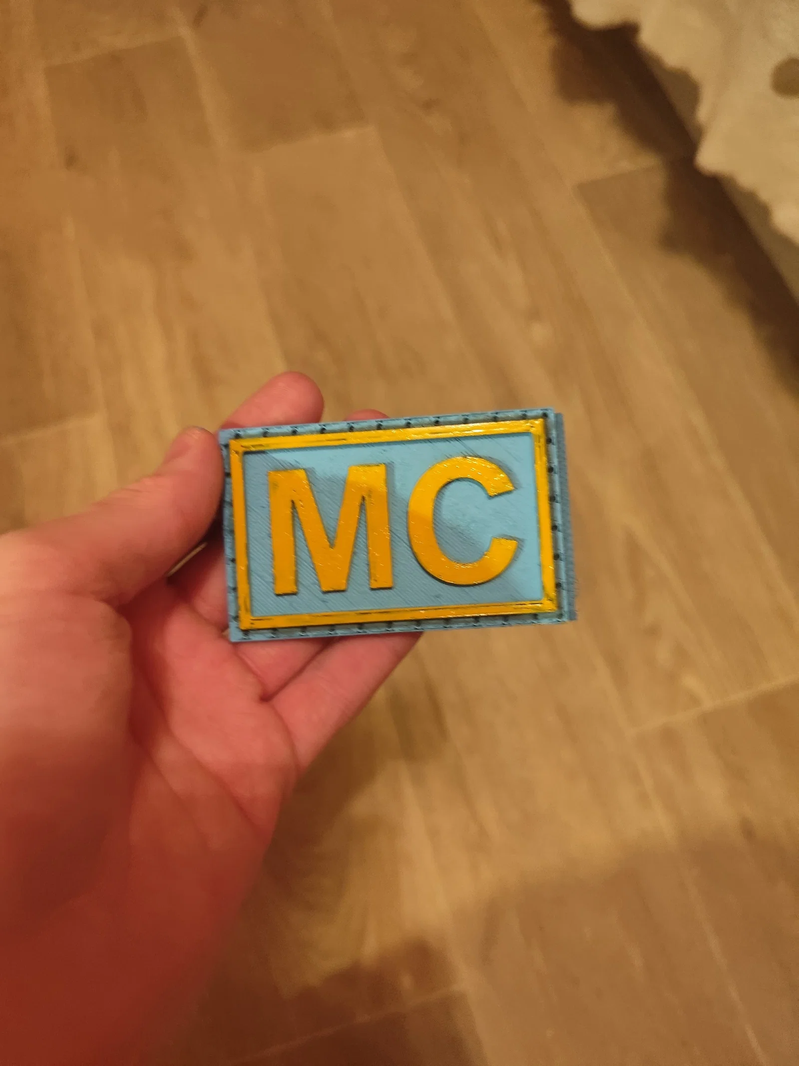 Đây là mô hình 3D được thiết kế dựa trên huy hiệu (patch) của lực lượng gìn giữ hòa bình, với hai chữ cái viết tắt "MC" nổi bật. Sản phẩm này cực kỳ phù hợp cho những ai đam mê sưu tầm quân sự, làm phụ kiện cho trang phục hóa trang (cosplay) hoặc dùng để gắn lên balo, áo khoác bằng miếng dán nhám (velcro) một cách dễ dàng. Thiết kế này mang tính biểu tượng cao, đường nét chữ được in nổi khối, tạo cảm giác chuyên nghiệp và mạnh mẽ khi nhìn từ bên ngoài.