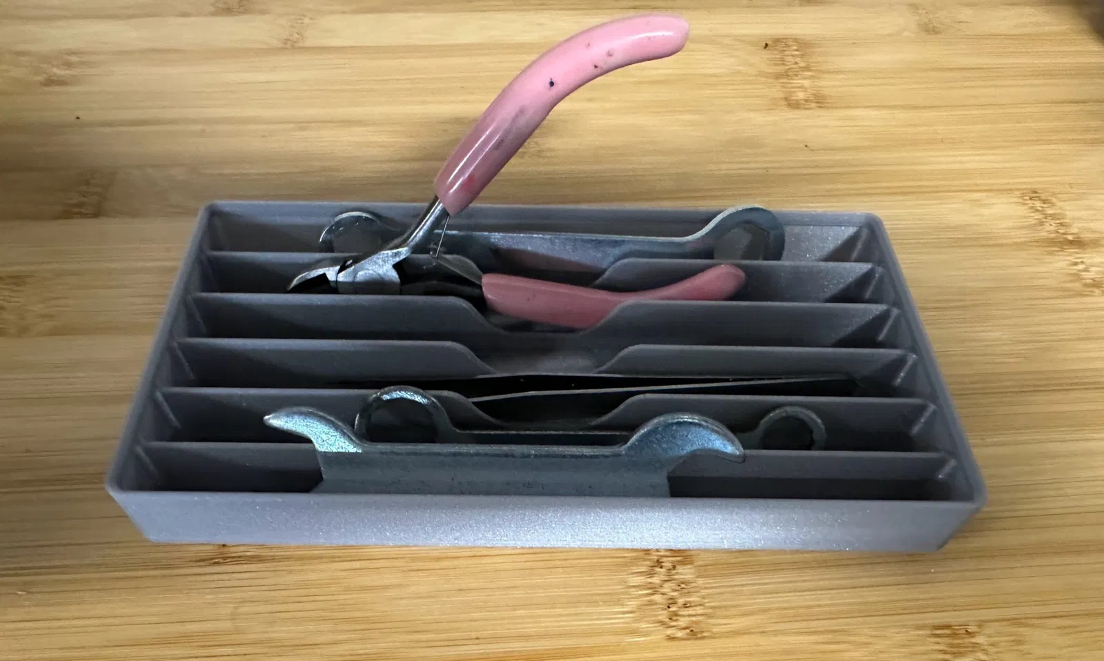 Khay tổng quát Gridfinity với 6 khe có lỗ cắt ngón tay 2x4x0.5. Tốt cho việc lưu trữ các công cụ nhỏ như nhíp, tua vít hoặc thậm chí kìm và kềm nhỏ.