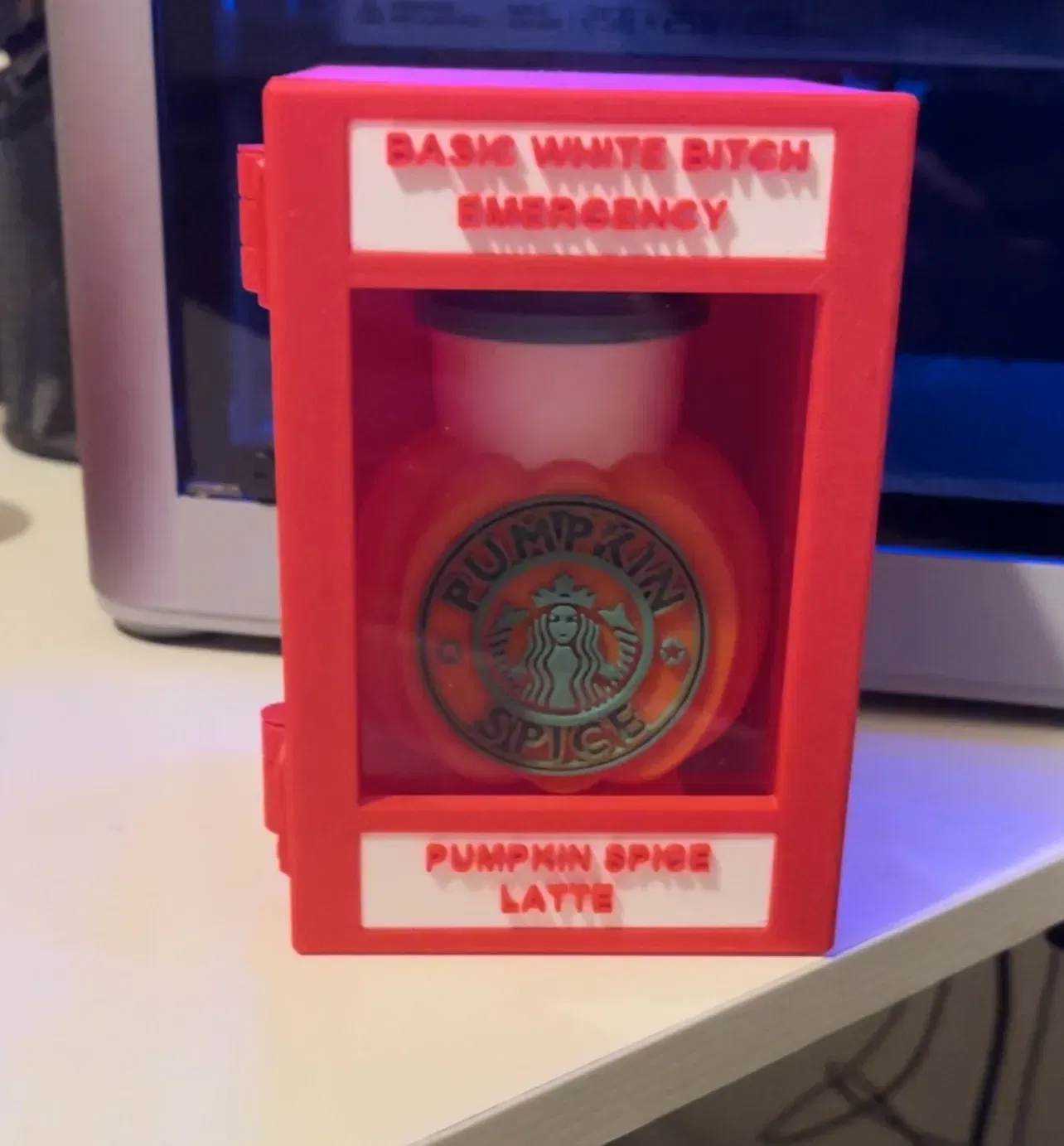 Cốc cà phê là một tệp tôi lấy từ thingiverse. Tôi chỉ thu nhỏ nó lại để phù hợp với hộp của mình. Quả bí ngô là một tệp khác mà tôi đã lấy. Tôi đã cắt một lỗ trên đó và thêm một logo mà tôi đã tạo ra. Cốc nên trượt ngay vào bên trong quả bí ngô.