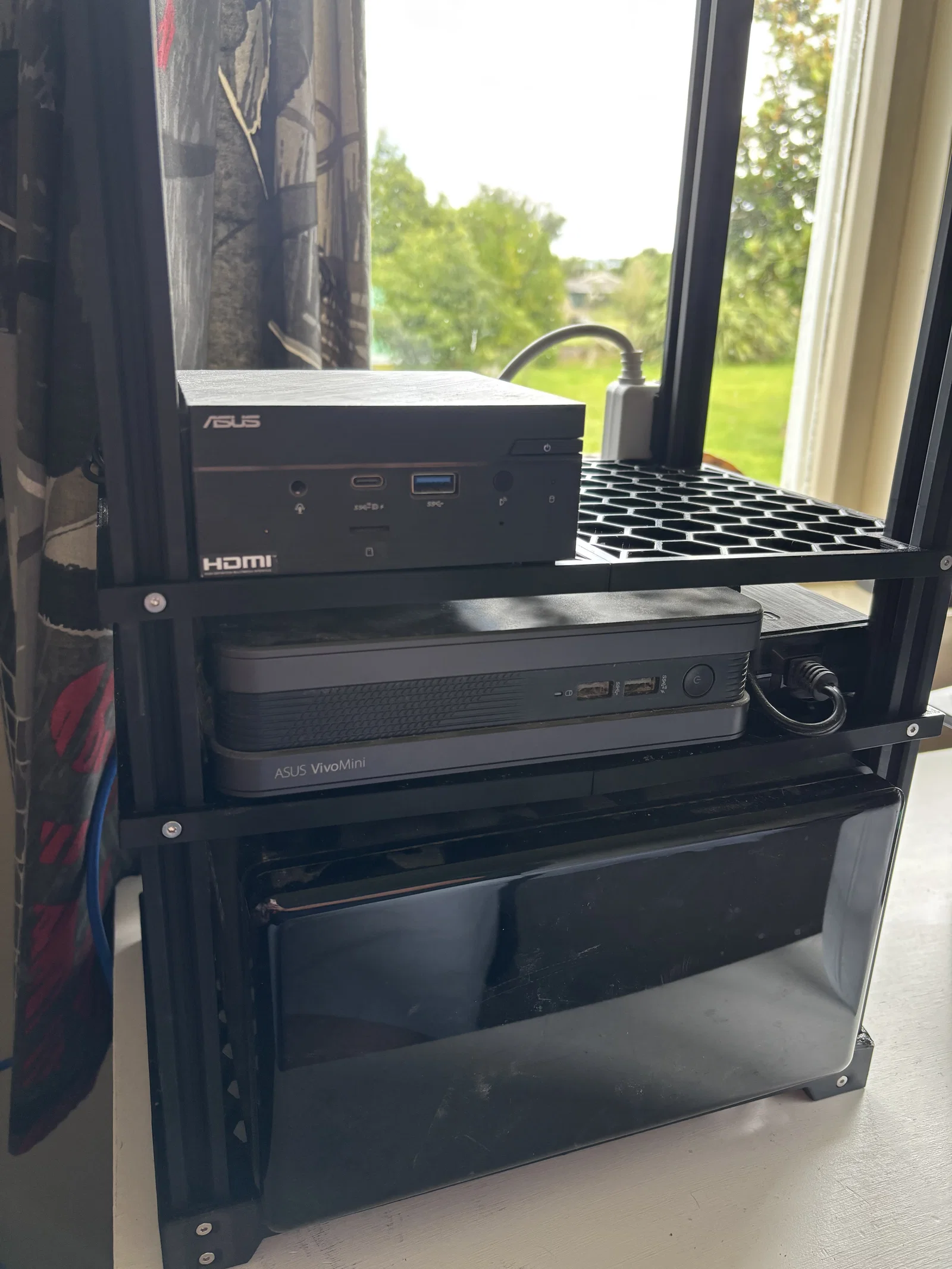 Khi đống thiết bị máy tính của mình ngày càng nhiều, mình nhận ra cần phải có một cách sắp xếp gọn gàng và hợp lý hơn. Mình đã xem qua nhiều lựa chọn cho các loại mini-rack 10 inch và thậm chí còn định tự thiết kế, nhưng thực lòng mà nói, hệ đo lường imperial làm mình thấy không thoải mái chút nào. Thêm vào đó, mình lại còn dư bốn thanh nhôm định hình 2020 dài 700mm từ dự án cũ, nên việc làm một hệ thống kệ dựa trên các thanh nhôm này là lựa chọn quá hiển nhiên rồi.