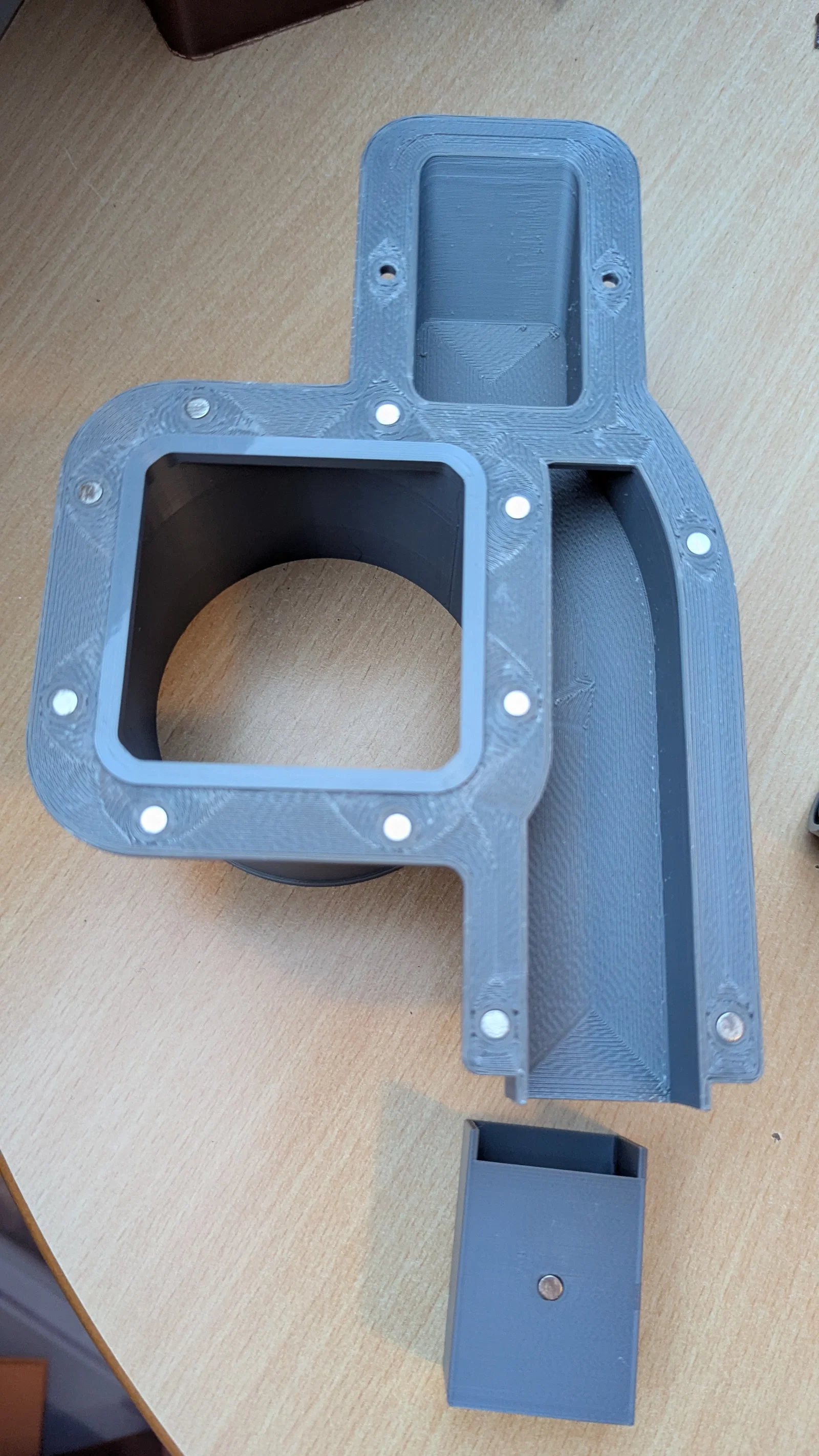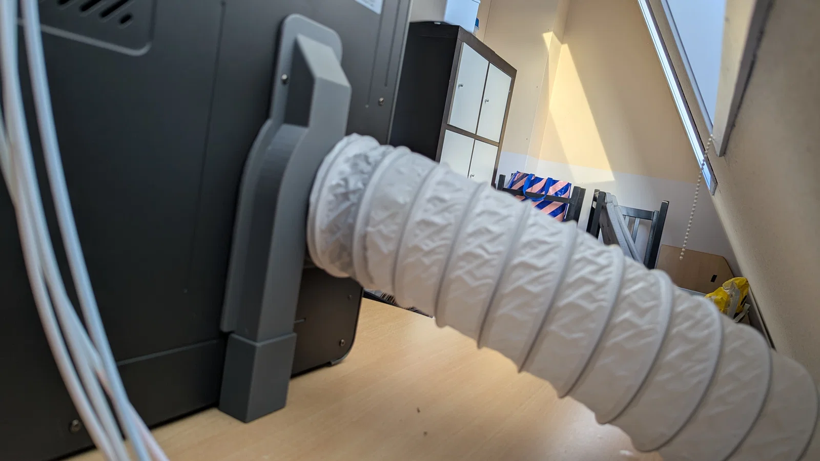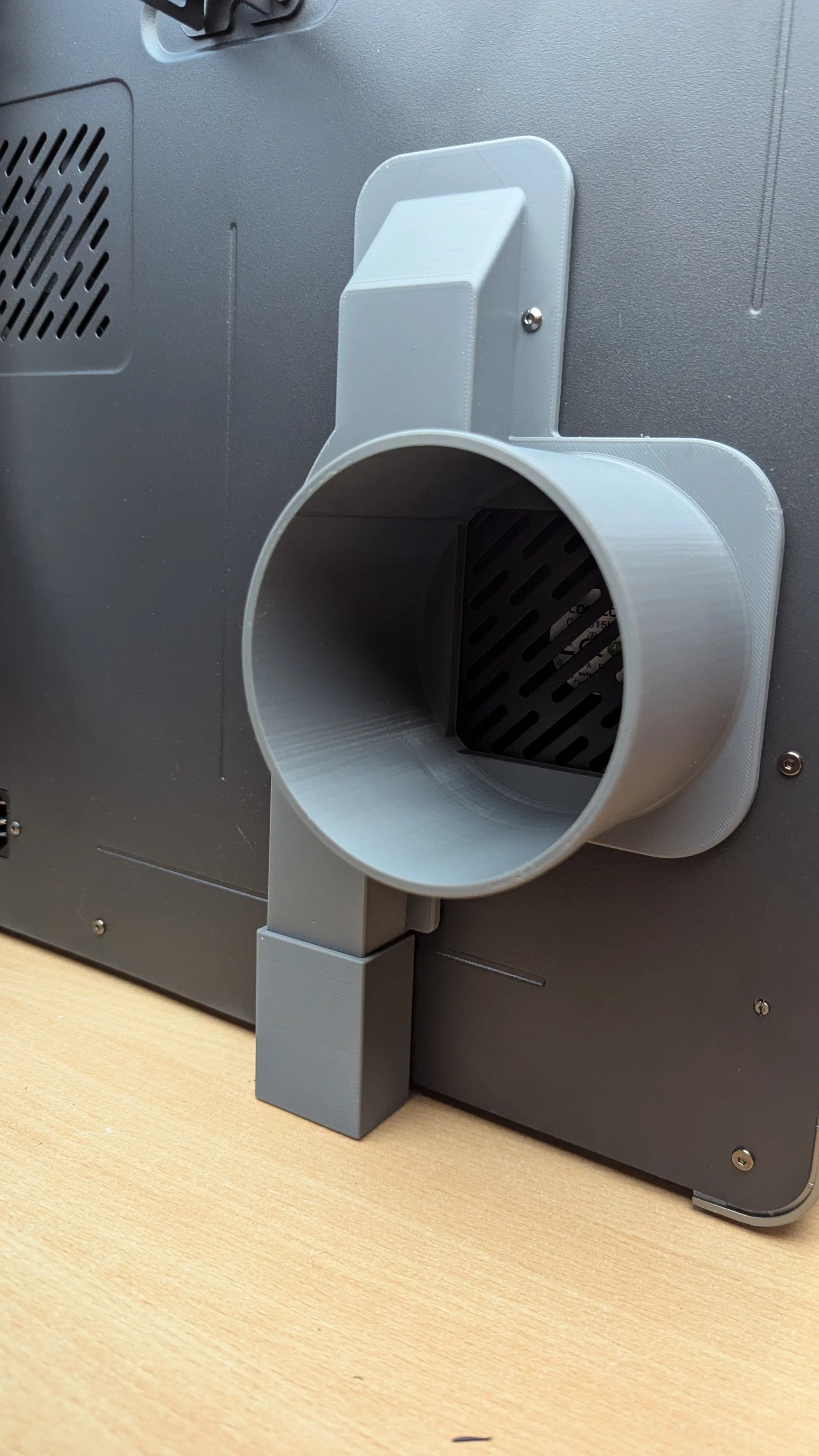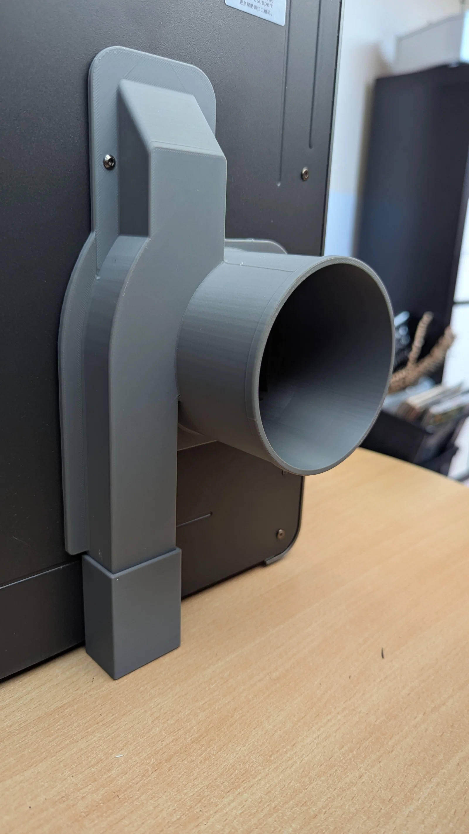Bản nâng cấp lai (hybrid) cho Anycubic Kobra S1 giúp hút sạch khí độc (VOCs) khi in ABS/ASA, tích hợp đường dẫn nhựa thừa tiện lợi. Thiết kế chắc chắn, lắp đặt dễ dàng với ống gió chuẩn 100mm.