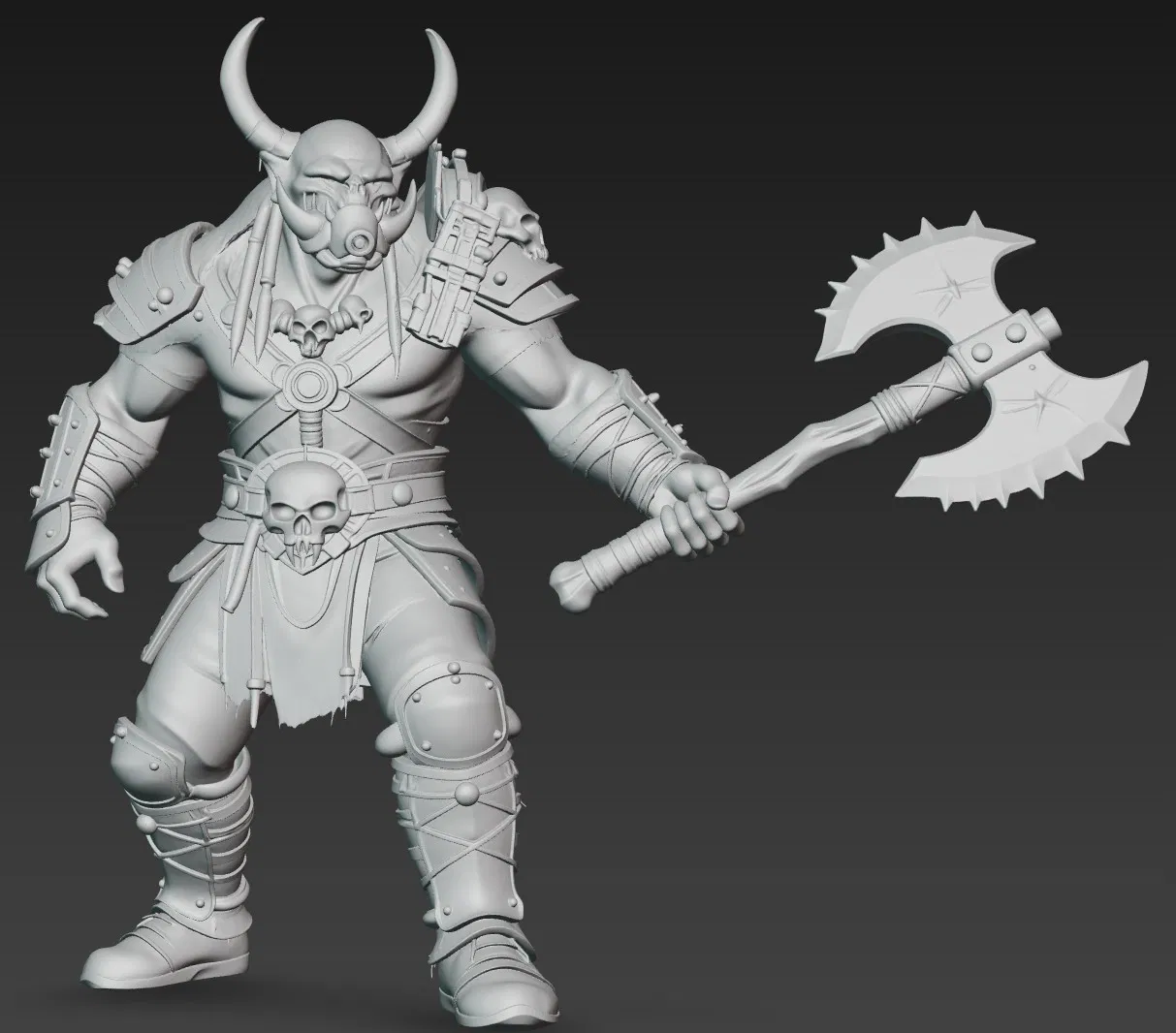 Mô hình này được trau chuốt tỉ mỉ từ những chi tiết nhỏ nhất như các hộp sọ trang trí trên vai và thắt lưng cho đến cấu trúc cơ bắp cuồn cuộn. Với tư thế đứng chiến đấu đầy hiên ngang, nhân vật này không chỉ thể hiện được sức mạnh mà còn mang lại cảm giác sống động, như thể vừa bước ra từ một trận chiến khốc liệt. Đây là một file STL chất lượng cao, đã được tối ưu hóa để quá trình in diễn ra thuận lợi nhất cho người dùng.