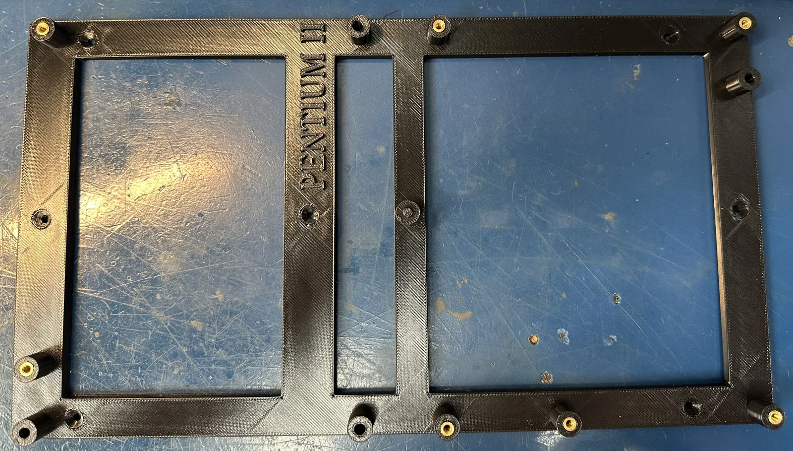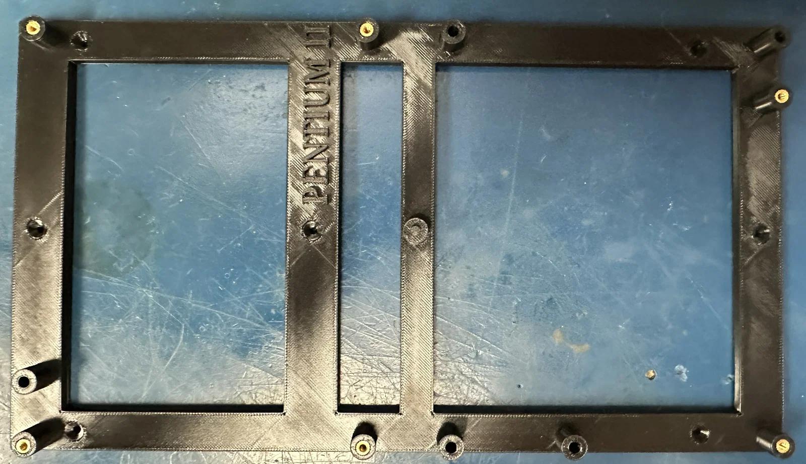 Tôi thường thiết kế và in các bộ khung để gắn bo mạch chủ (motherboard) nhằm phục vụ việc kiểm tra và sửa chữa. Bộ khung này được tôi thiết kế cho các bo mạch chủ thời Pentium 2, dùng để test card đồ họa. Bộ khung này cũng tương thích với một loại kiểu dáng bo mạch chủ Pentium II khác nữa, tôi sẽ cập nhật ví dụ đó sớm thôi. Thiết kế này yêu cầu sử dụng các ốc cấy nhiệt (heat press-ins) loại 3mm. Nếu anh em gặp vấn đề về độ vừa khít khi lắp, có thể cần điều chỉnh nhẹ lại vị trí ốc cấy. Chiếc khung này được tôi in bằng nhựa ABS màu đen.