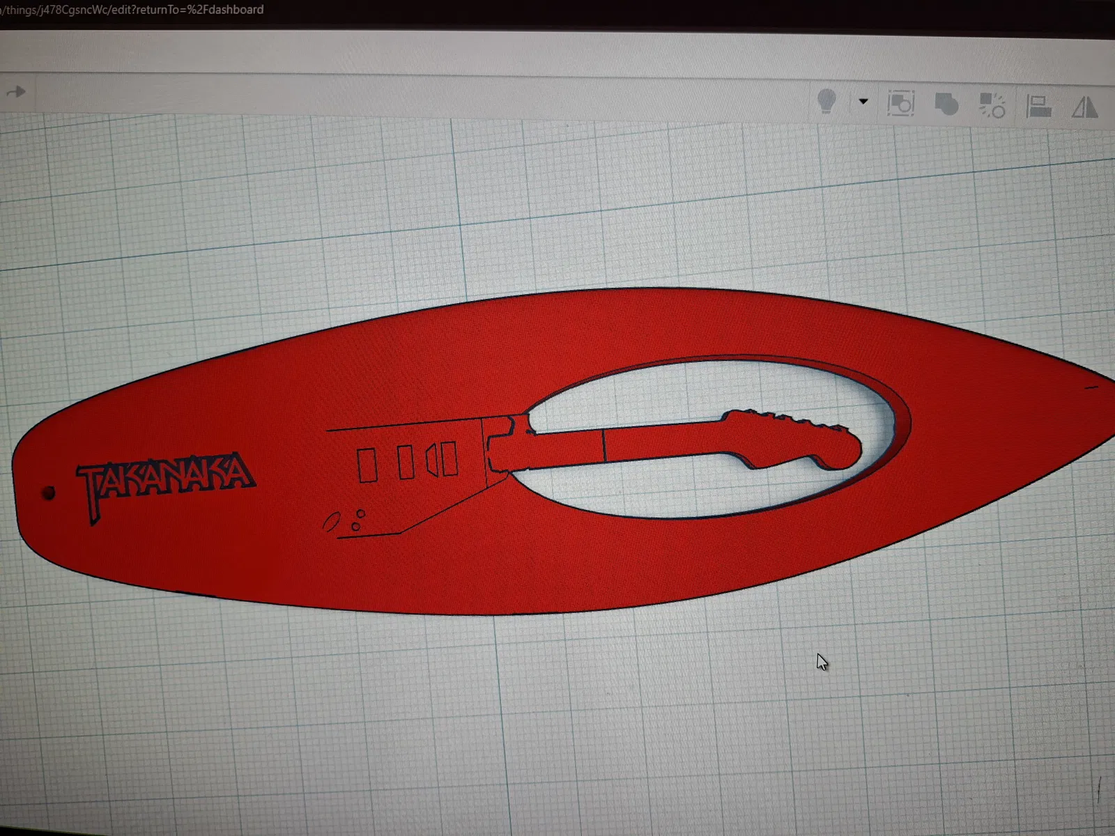 Thiết kế này mang phong cách tối giản nhưng cực kỳ tinh tế, với hình dáng ván lướt sóng đặc trưng cùng logo Takanaka được khắc rõ nét ngay trên bề mặt. Phần khoét rỗng ở giữa mô phỏng lại dáng hình của cây đàn guitar, tạo nên một hiệu ứng thị giác rất thú vị khi đặt dưới ánh sáng. Việc in ấn mô hình này cũng khá đơn giản đối với những bạn đã quen với 3D printing, miễn là bạn chú ý đến độ chi tiết của các đường cắt để đảm bảo sản phẩm sau khi in ra đạt độ thẩm mỹ cao nhất.