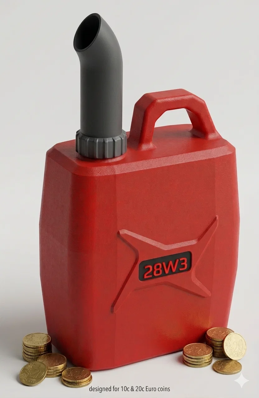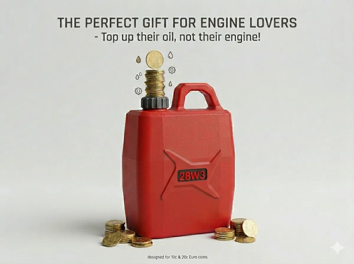 Mẫu Jerry Can (bình xăng) chi tiết này là món quà tuyệt vời nhất cho bất kỳ ai mê xe, thợ máy hay dân chơi xe phân khối lớn. Đây là một chiếc ống heo chức năng được thiết kế riêng để đựng các đồng xu 10 và 20 Euro Cent.