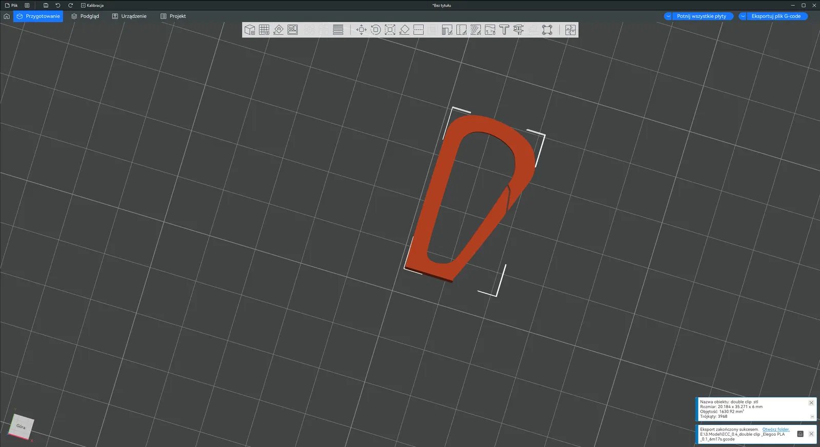 • Hướng in: Hãy đặt mặt phẳng của móc khóa nằm sát bàn in để đảm bảo độ bám dính tốt nhất, không cần sử dụng support nếu máy in của bạn có khả năng bắc cầu (bridging) tốt.