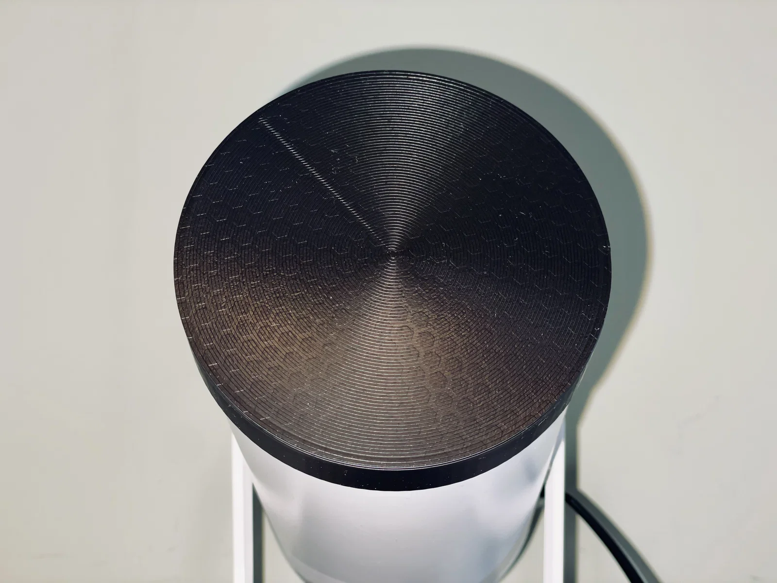 Bề mặt dưới của nắp có họa tiết tổ ong tinh tế, đây là hiệu ứng có được nhờ in trên tấm nền BIQU Honeycomb build plate (từ Botland).