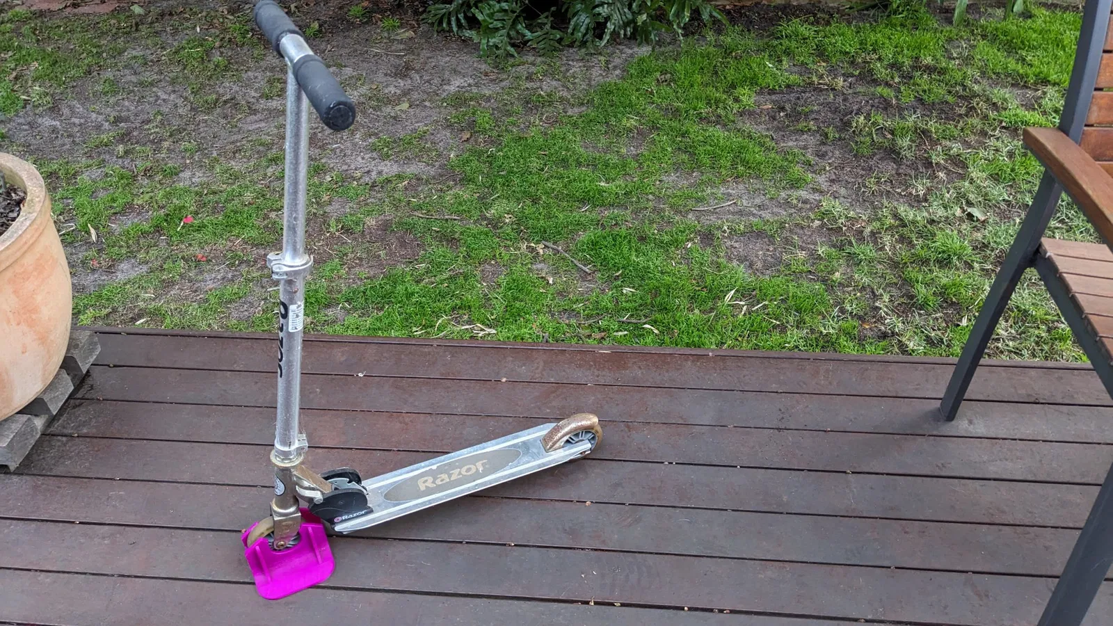 Tôi đã tạo ra một giá đỡ cho xe scooter của trẻ em để chúng luôn đứng thẳng và không nằm rải rác khắp sân khi không sử dụng. Cái của tôi đã được sử dụng trong vài năm nay và chúng hoạt động rất tốt.