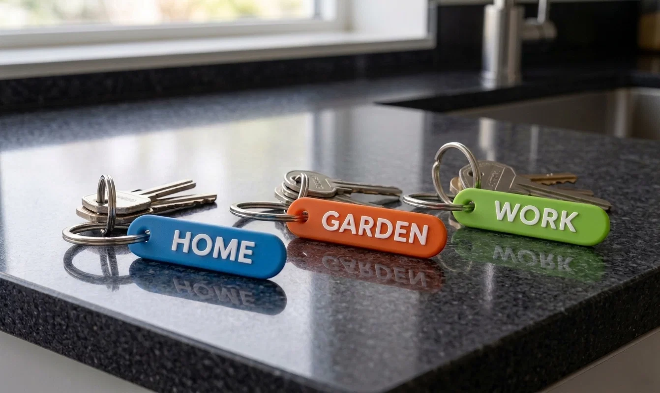 Các mẫu thẻ móc khóa nhỏ gọn với phần chữ tùy chỉnh tiện lợi. Thiết kế cạnh vát dễ sử dụng, hỗ trợ in hai màu và tính năng ironing giúp bề mặt chữ sắc nét, chuyên nghiệp hơn cho mọi loại chìa khóa của bạn.