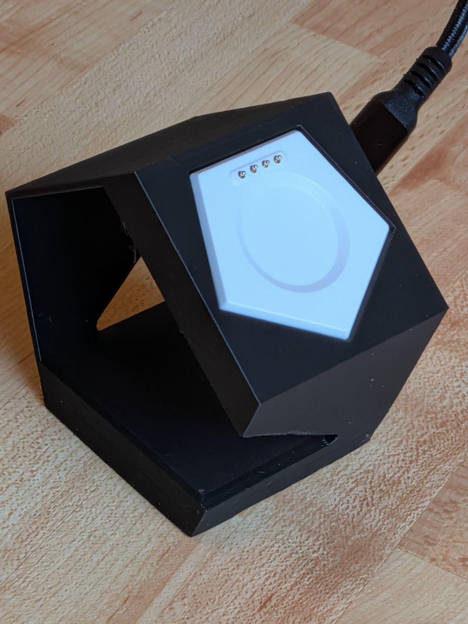 Mình muốn có cái sạc thứ hai để để ở văn phòng, nên mình đã mua một đế sạc từ Trung Quốc và tự thiết kế cái chân đế cho nó. Đây là ví dụ về loại đế sạc đó: https://www.aliexpress.com/item/1005006925605704.html?spm=a2g0o.tesla.0.0.1f8d47qk47qkbV&afTraceInfo=1005006925605704pcc_ppc_item_bridge_pc_same_wfxrakOOB1774624798862. Đế sạc này có cả cổng USB-C và Micro-USB, nhưng mình thiết kế cái chân đế này chỉ dùng cho cổng USB-C thôi. Bạn có thể in với bất kỳ độ dày lớp in nào và có lẽ không cần hỗ trợ (support), nhưng mình ưu tiên dùng layer 0.2 với một support dạng organic cho phần cổng sạc. Mình có kèm theo file .gcode của máy MK3S+ mà mình đã dùng để in. Lời khuyên của mình là nên thêm modifier vào phần đế bên dưới và chỉnh infill dày hơn so với phần còn lại của mô hình. Mình đã mô phỏng hình ngũ giác của đế sạc vào thiết kế, làm cho cái chân đế cũng có hình ngũ giác luôn.