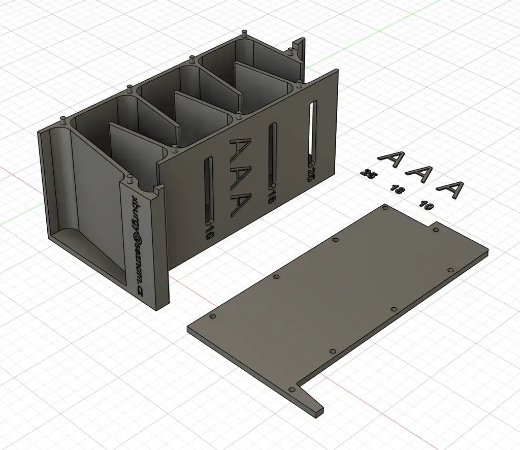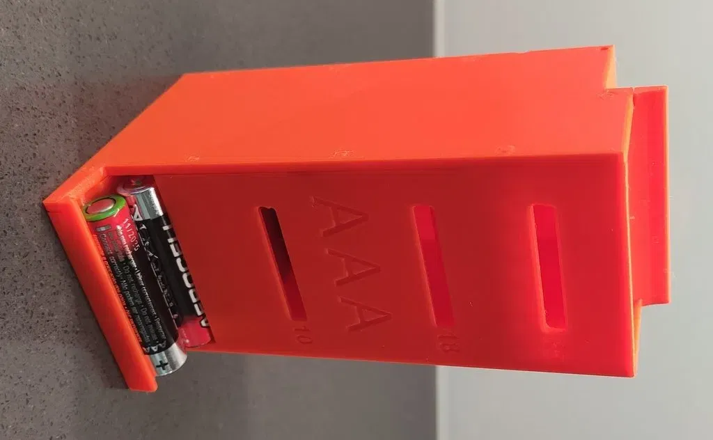 Kích thước bộ phân phối pin AAA. Dung lượng 25 mảnh pin. Tự khóa, không có chất kết dính. Không hỗ trợ.