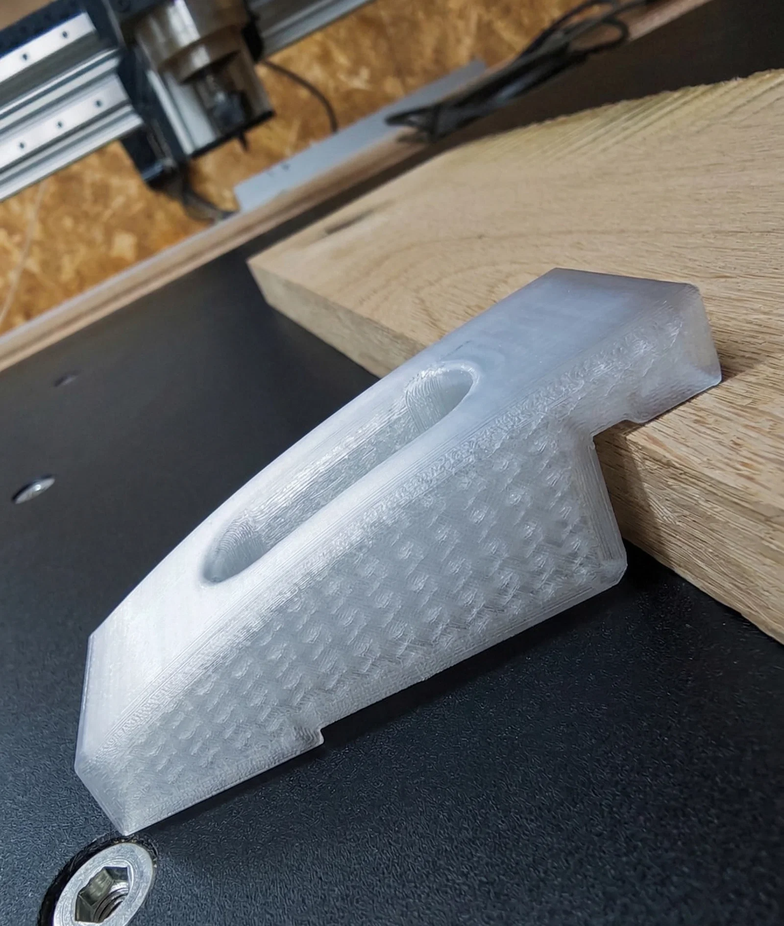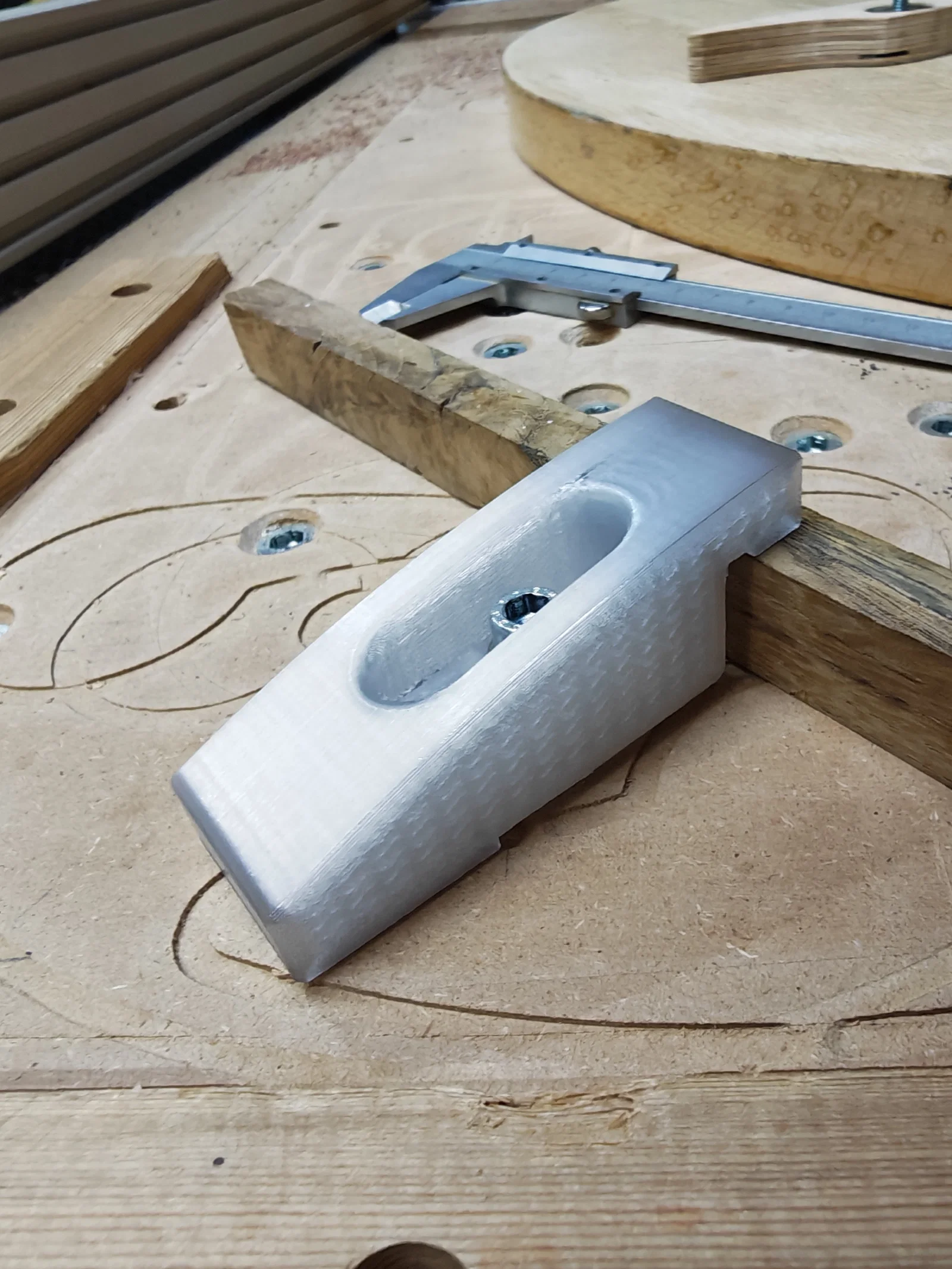 Kẹp CNC cấu hình thấp được thiết kế để giữ vật liệu chắc chắn, không cản trở đường chạy dao. Lý tưởng cho máy CNC và làm mộc với độ dày phôi 18-25mm. Khuyên dùng PETG, in đặt nghiêng cạnh để đạt độ bền tối đa.