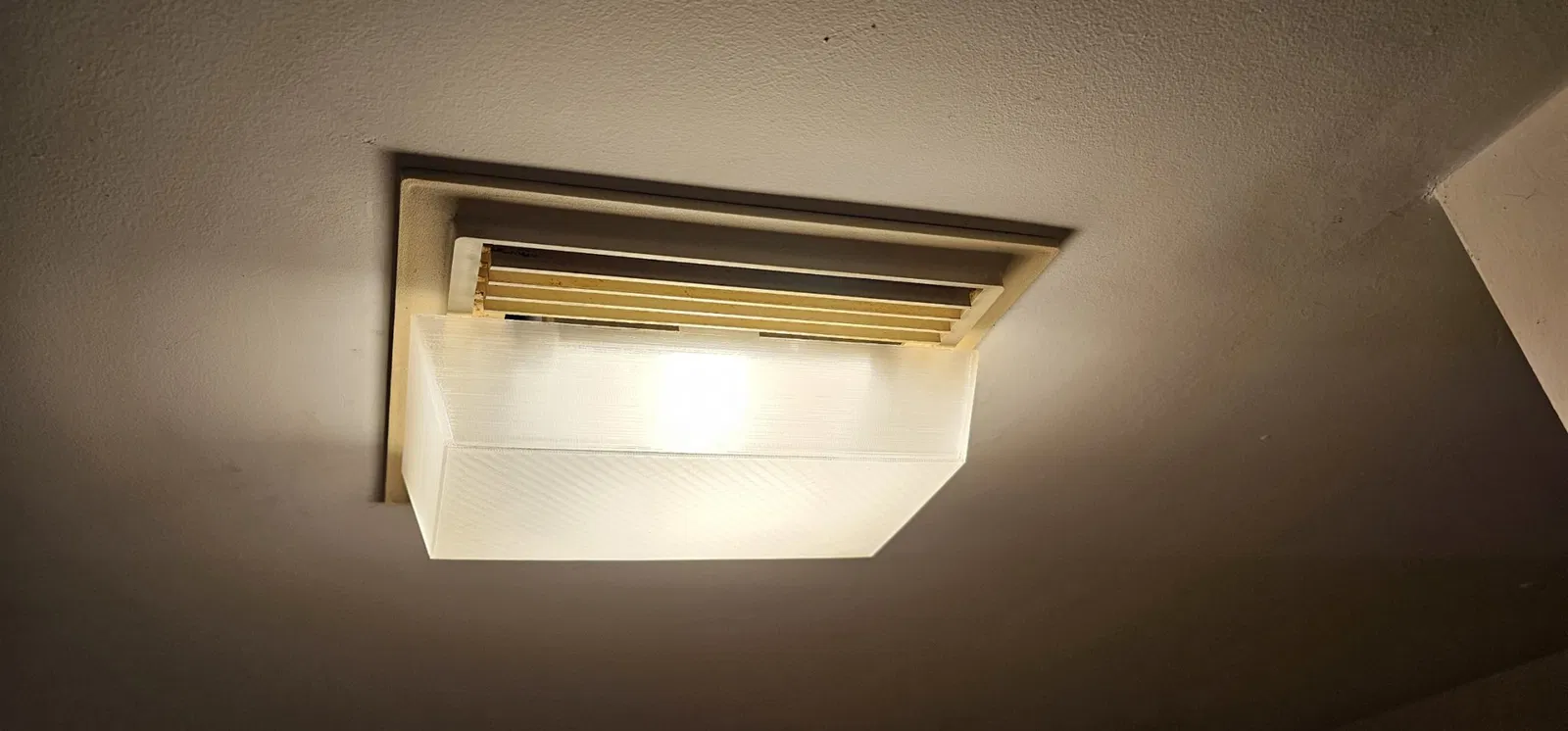 Tôi đã làm hỏng nắp đèn phòng tắm khi vệ sinh và quyết định làm một cái mới. Nó có kích thước 246mm X 157mm X 62mm. Tôi đã in nó bằng PLA trong suốt với 100% độ đặc (Rắn). Nó trông rất tuyệt và vừa hơn so với cái gốc. Hãy thoải mái điều chỉnh nó để phù hợp với đèn của bạn.