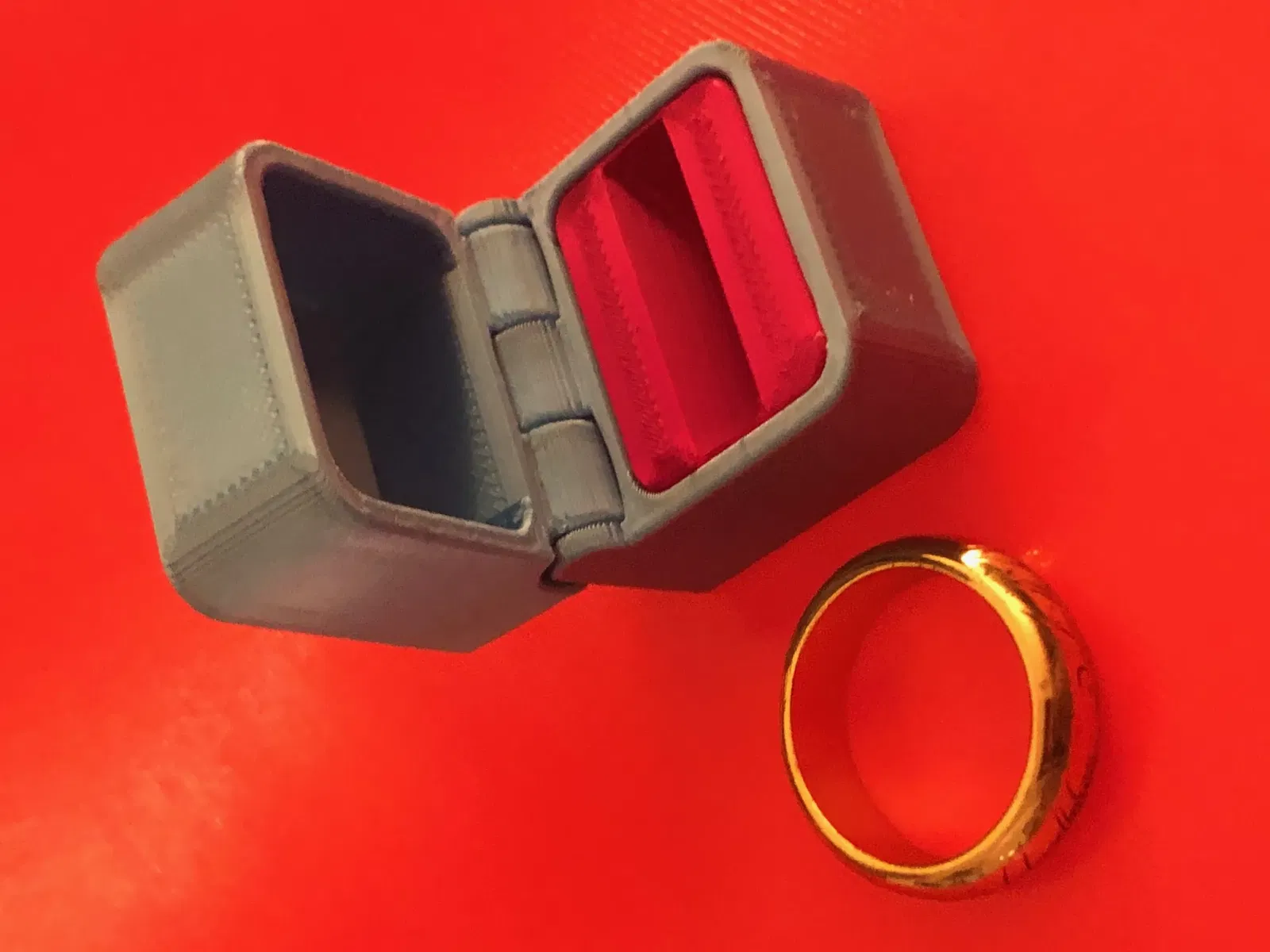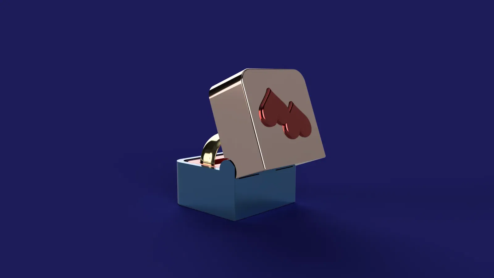 Đây là một chiếc hộp nhẫn nhỏ xinh đẹp dành cho những người yêu nhau, Ngày Valentine, đính hôn hoặc cho đám cưới với logo trái tim và bản lề bên trong được che giấu.